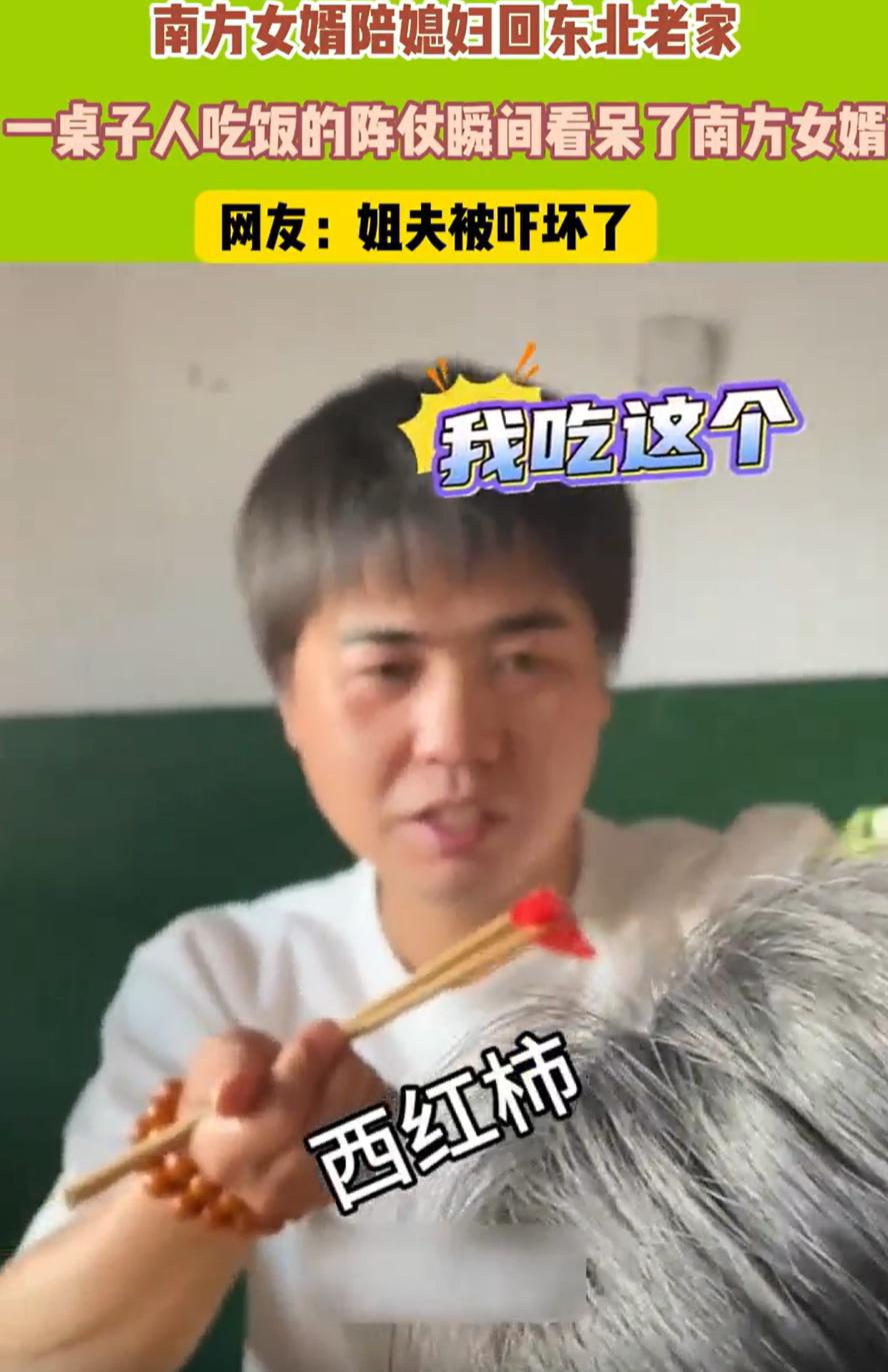 辽宁,一位南方女婿来到娘家过节,可让他没想到的是,一家人吃饭时竟然上了一桌子的蘸酱菜,而且大家都吃的津津有味,可在他看来,这就跟吃“绿化带”一样,面对娘家人的投喂,女婿是连连抗拒 由于过节吃多了大鱼大肉,所以娘家一大早就想着弄点清淡的,弄了一桌子的蘸酱菜,可他们显然低估了南方女婿,一家人吃的大快朵颐,女婿却在旁边看呆了 娘家人劝着说:你个南方小土豆子,到这边不吃蘸酱菜,不吃草,你吃啥啊!可即便大家如此开玩笑和劝导,女婿还是没有决心吃蘸酱菜,最后只是夹了一口黄瓜丝和西红柿吃了一口 有网友说:大葱、小葱、黄瓜、生菜、苦苣、婆婆丁、麻椒、甜椒、水萝卜、心里美、茄子、大豆腐、干豆腐都可以直接蘸酱,这能有啥问题 也有网友表示:女婿上门是客,给人家吃菜叶子,连个热菜都没有,一盆子生菜叶子配蘸酱,这确实不应该 其实从这个事上,就能看出南北方简单的饮食差异,在东北,蘸酱菜是夏日里最寻常不过的家常菜,新鲜的蔬菜从田间到餐桌,保留了最原始的清甜。而对很多南方人来说,蔬菜通常需要经过烹饪,生吃蔬菜的概念并不常见 只能说谁都没错。女婿不吃蘸酱菜,是口味问题;娘家热情招待,是好心。其实换个角度想,下一次或许可以上半桌蘸酱菜,再炒两个热菜,这样南北口味都能照顾到。毕竟,吃饭不是比习惯,而是图个团圆和热闹