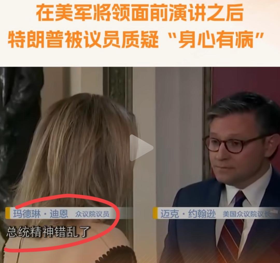 谁还敢说特朗普错乱?10月7日,加拿大总理卡尼在第二次和特朗普会晤后,在白宫椭圆形办公室接受记者采访时赞美了特朗普在第二任期内取得的一些成就,他以为这样就可以让特朗普忘了吞并加拿大的事,结果,当他说到“在许多方面中最重要的是”时有些结巴,特朗普抓住机会立即插嘴道提醒他:“加拿大和美国的合并(的事)。” 这反应够迅速够机智吧?卡尼立即尴尬地摆手:“我可没想那么多。” 而此前,就特朗普在将军们面前的表演,负责外交和拨款事物的民主党众议员玛德琳·迪恩就曾对共和党的众议院议长麦克·约翰逊说过特朗普“总统精神错乱了”,“这太危险了吧”的话。 但现在看,特朗普能在卡尼停顿的时候恰到好处地接话,丰富自己功绩,谁还敢说他精神有问题?不但精神没问题而且记忆力也好着哪,人家一点也不危险。