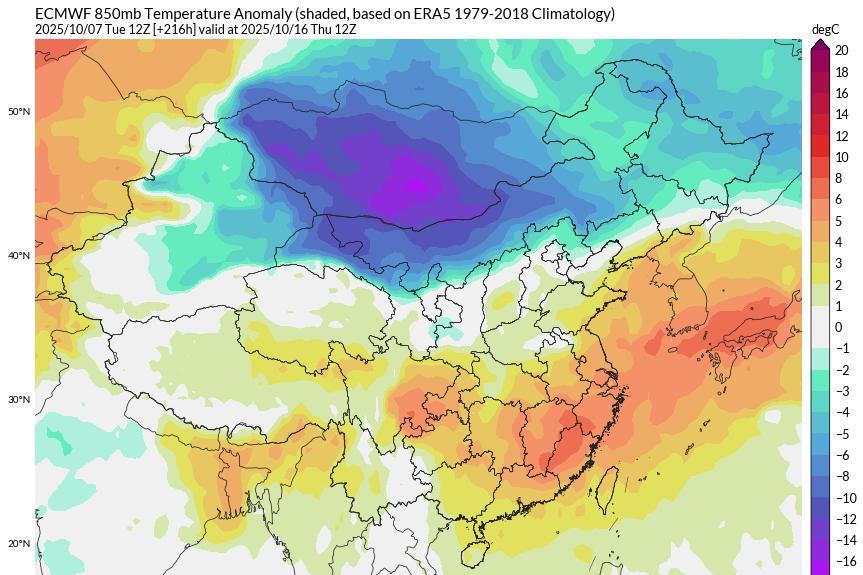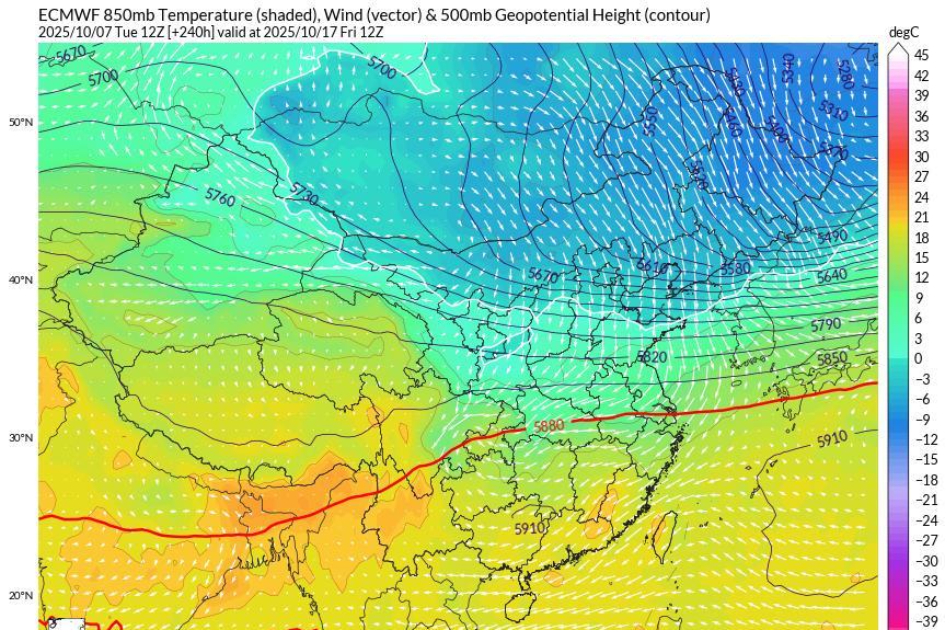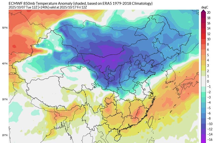 从传统数值预报来看,一直到17号冷空气都没有要南下的意思,不过AI数值倒是对中旬