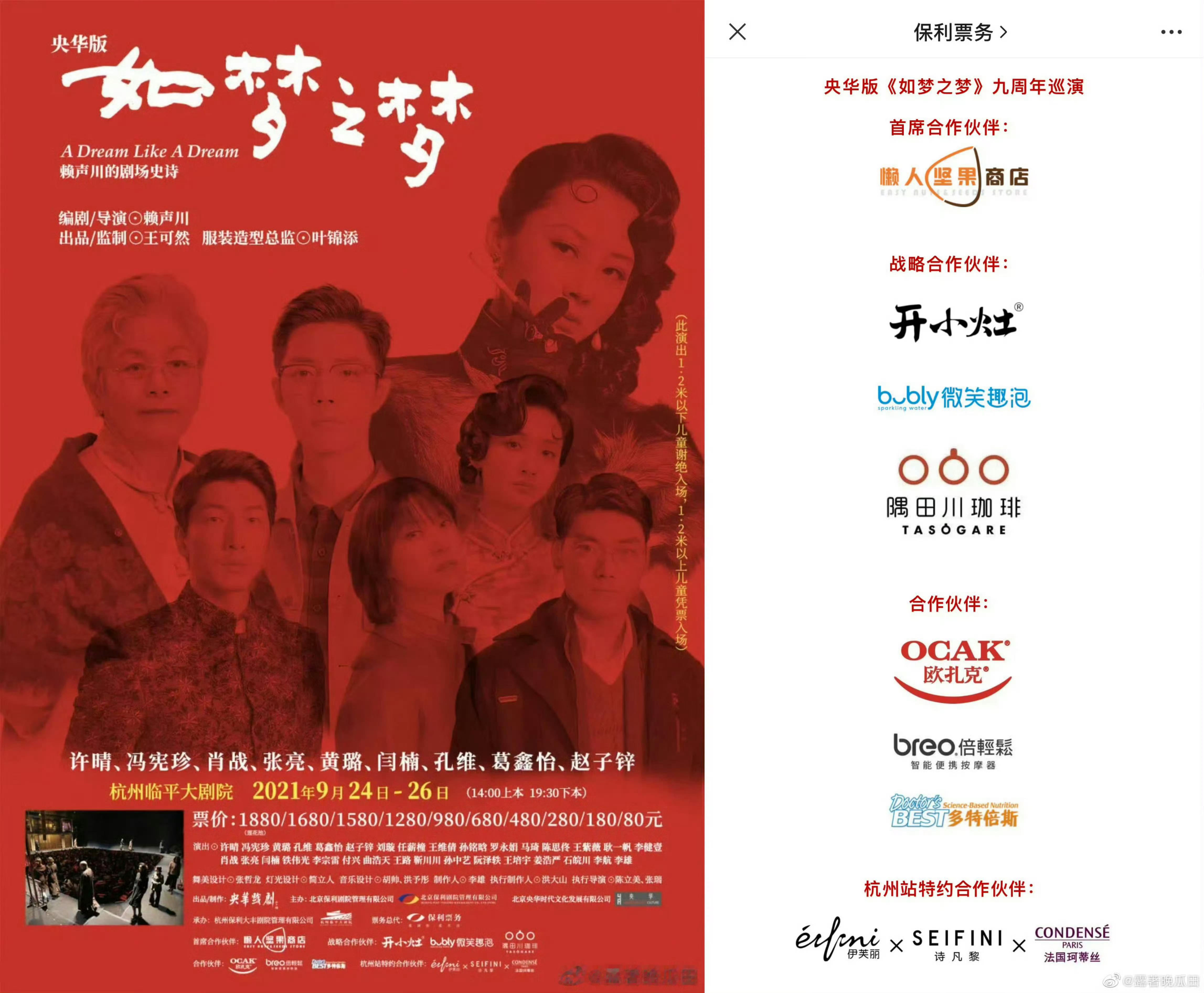 2021年9月,赞助肖战话剧《如梦之梦》杭州站