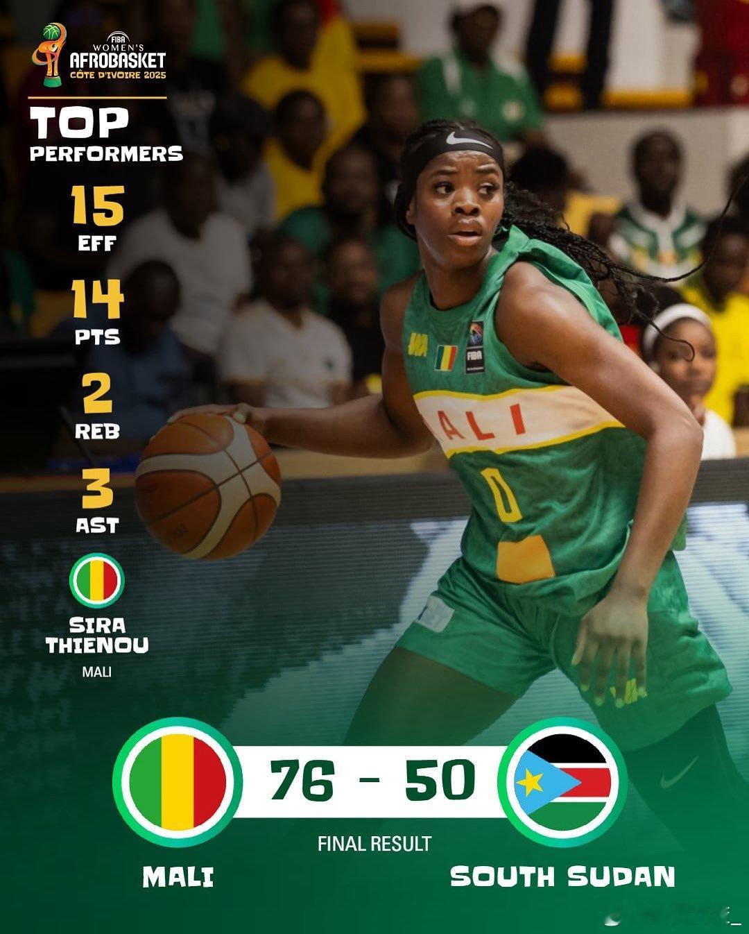 马里:2025非锦赛亚军,与南苏丹不一样的是,她们不依赖海外军团。绝对核心、身高191CM的内线希卡-科内(Sika Kone)是土生土长的马里人,15岁前往西班牙学习、打球,2019年U19女篮世界杯,她率马里青年队打进半决赛,创造了非洲历史。2022年,她在WNBA选秀总第29顺位被选中,此后一直在WNBA效力。其主力后卫Djeneba N'Diaye亦是马里本地人,本赛季效力于法国二级联赛。