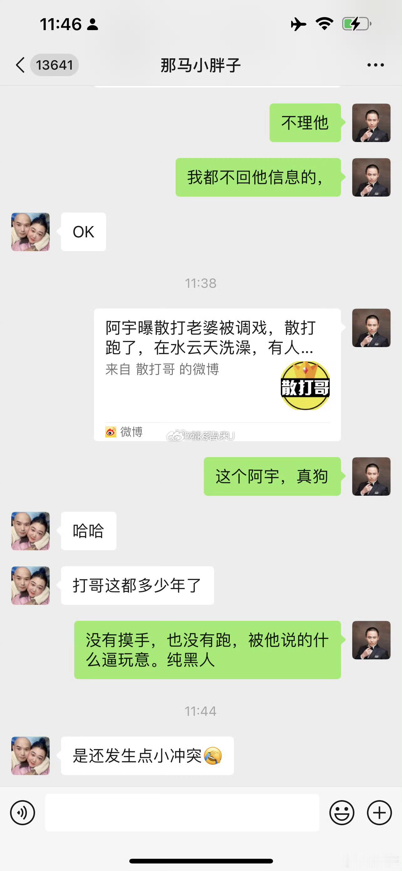 散打晒聊天记录,证实当年确实在在洗浴中心与人发生矛盾,但没有跑路,是阿宇纯黑人!