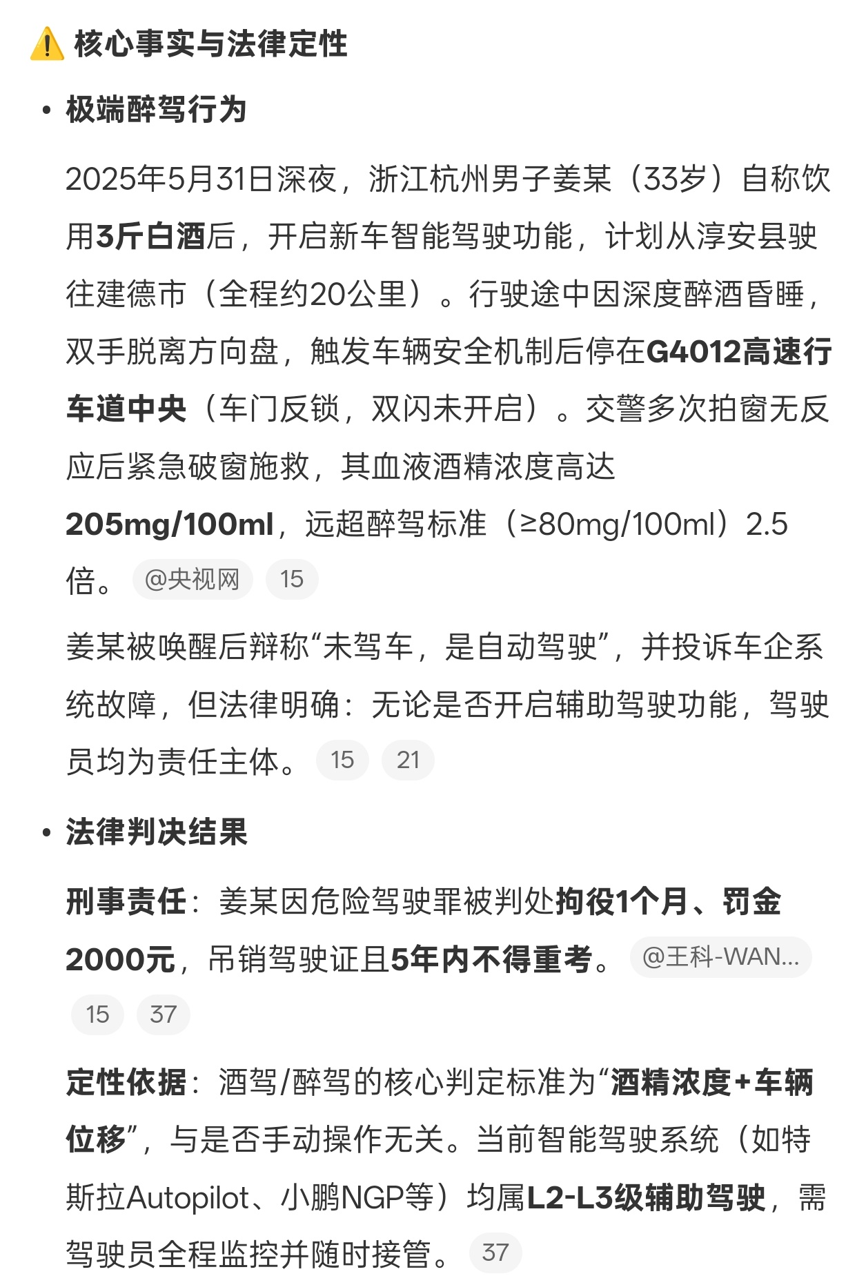 男子喝3斤白酒用智驾开车20公里