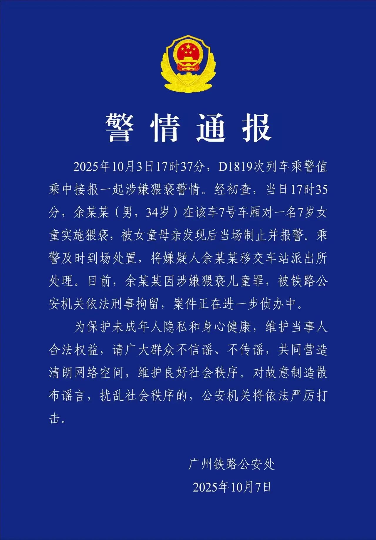 后续来了!高铁陌生男子对8女孩非礼被抓了! 近日,某高铁上,一陌生男子见身边女