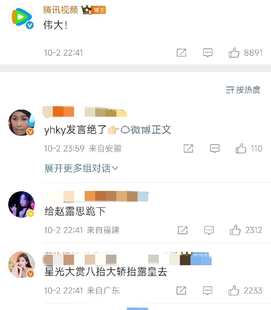 2025年四大平台的代表作基本确定了。 鹅:赵露思、陈伟霆《许我耀眼》 桃:杨幂、欧豪《生万物》 酷:肖战、张婧仪《藏海传》 芒:杨紫、李现《国色芳华》 除了跟着肖战沾光的95花张婧仪,其他几部依然都是85/90/95已经成名的顶流花在抗剧。 各平台力捧的几个新生代太子太女们,资源给的都不算差,但是依然没有一个出圈的。 有了许我耀眼的『伟大』成绩,相信赵露思的解约之路会变得顺坦些。 说实话,鹅厂与其捧那些没什么观众缘的太女,不如转投赵露思。