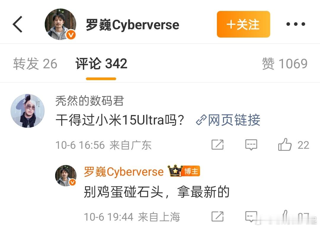 罗巍: 小米15 Ultra在荣耀Magic8 Pro面前就是鸡蛋碰石头[doge]