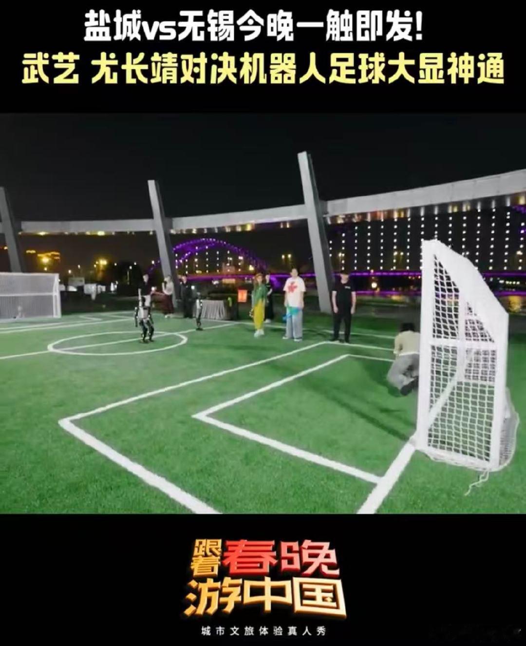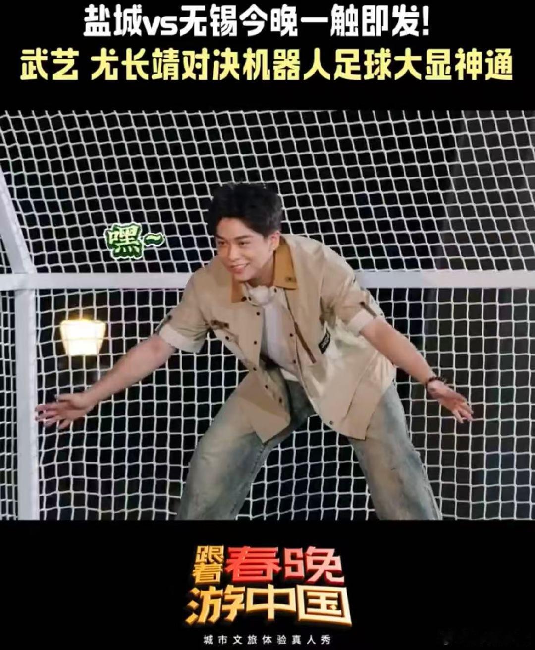 跟着春晚游中国苏超人机分赛场点球大战 武艺居然上苏超守门了!记得他以前说自己爱踢前锋,现在转门将对抗机器人,和尤长靖一起应战,这酣畅淋漓的对决必须看,今晚锁定央视!