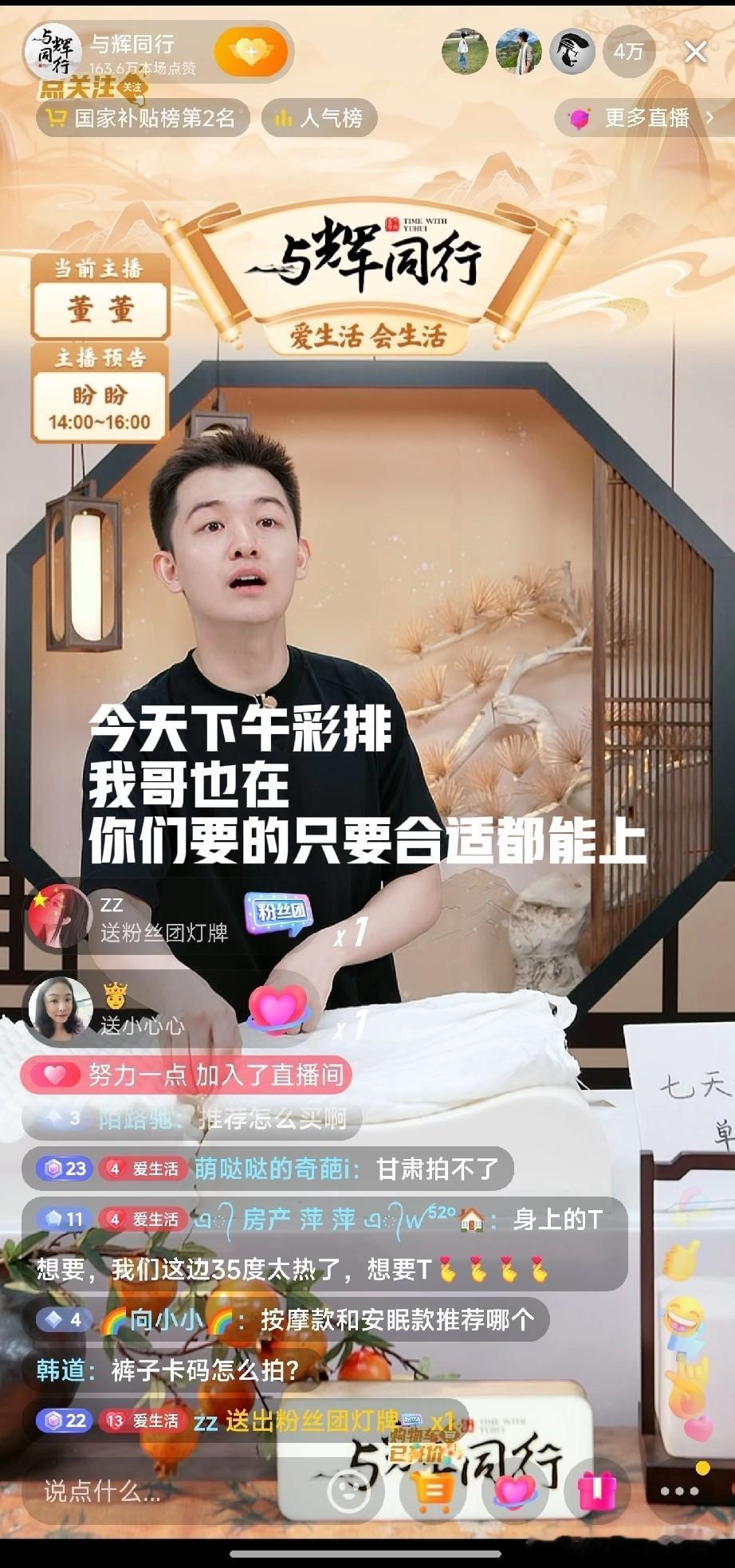 董董说今天下午要进行彩排,外场又开始了吗? 董董这个小弟弟真好。刚刚直播的时候,有要儿童枕的,他说今天下午彩排的时候,他哥也在,如果合适,当时就能定下来,会给大家上。大家都知道董董喊的哥是谁?一听到他的名字,不管多烦躁的心情顿时安稳了很多。就感觉有了主心骨一样。我要去看看他们要彩排什么?与辉同行要有什么活动呢?