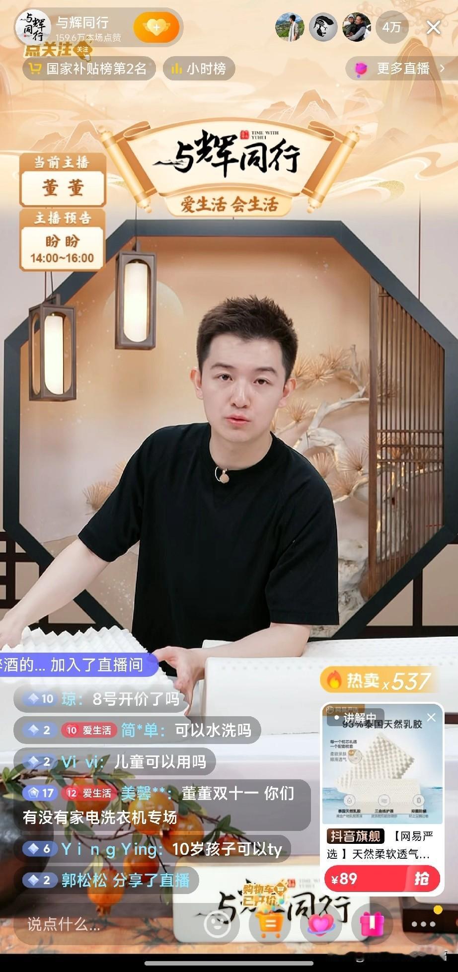 好久不见,董董的发型变回来了,说实话,还是这个发型更帅气精神一点 ,不过一个小小的建议,董董的发际线能不能再修整一下[微笑] 昨天我在兰芝春旭给老公买了一个枕头 ,花了99元,已经发货,在纠结要不要换董董今天正在讲解的88元的这个乳胶枕,毕竟与辉同行和兰芝春须的质量都是让人放心的,谁都会选择价格更合适一点,到底要不要换呢? 不管在哪家买,我是一定要买一个,这次国庆假期去老公那里,他的枕头我笑了好久,到现在秋天了外面还装着凉枕套,里面的枕芯小的不能再小了,为了不仰头,外面还得包上棉袄。他这种人说节俭吧是不乱花钱,但是这枕套被子与身体接触的东西可不能省呀!他不舍得买,我给他买。[微笑]