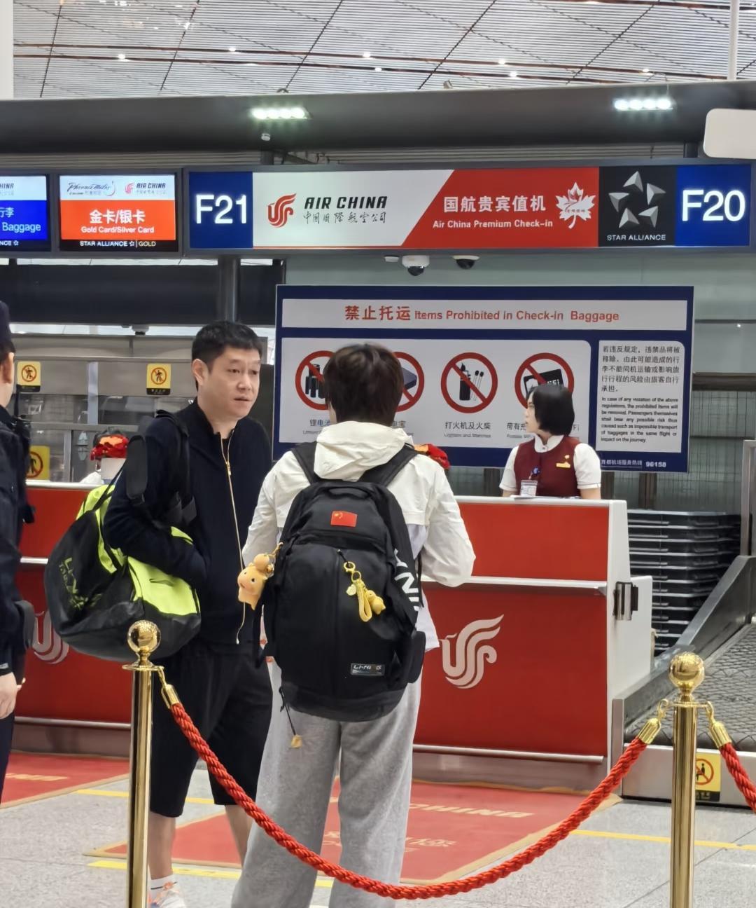 国乒今日首都机场出发前往印度参加亚锦赛。王楚钦、王曼昱、林诗栋、蒯曼等队员纷纷现身机场。 孙颖莎大概走VIP通道。 王皓、刘志强、邱贻可、任浩等教练也一同跟赛。但是没有看到马琳女主教练出现。 不知道马琳本次亚锦赛是否还会正常跟赛? 因为是在印度参加的比赛,希望国乒队员和工作人员都要保护好身体健康和人身安全!