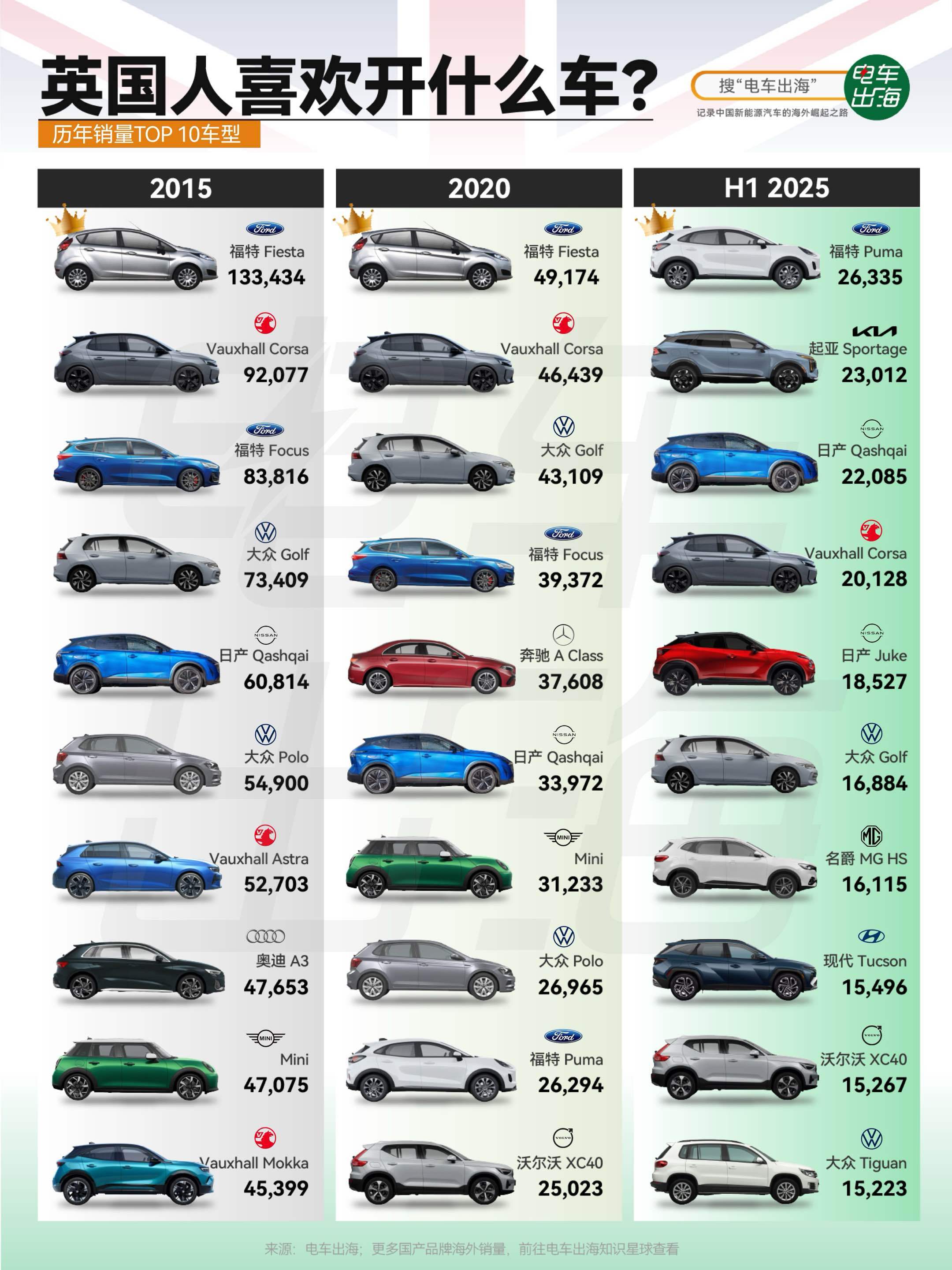 最亮眼的是中国名爵HS,今年直接空降榜单。看来英国大街小巷,很快就要被中国车占领了。