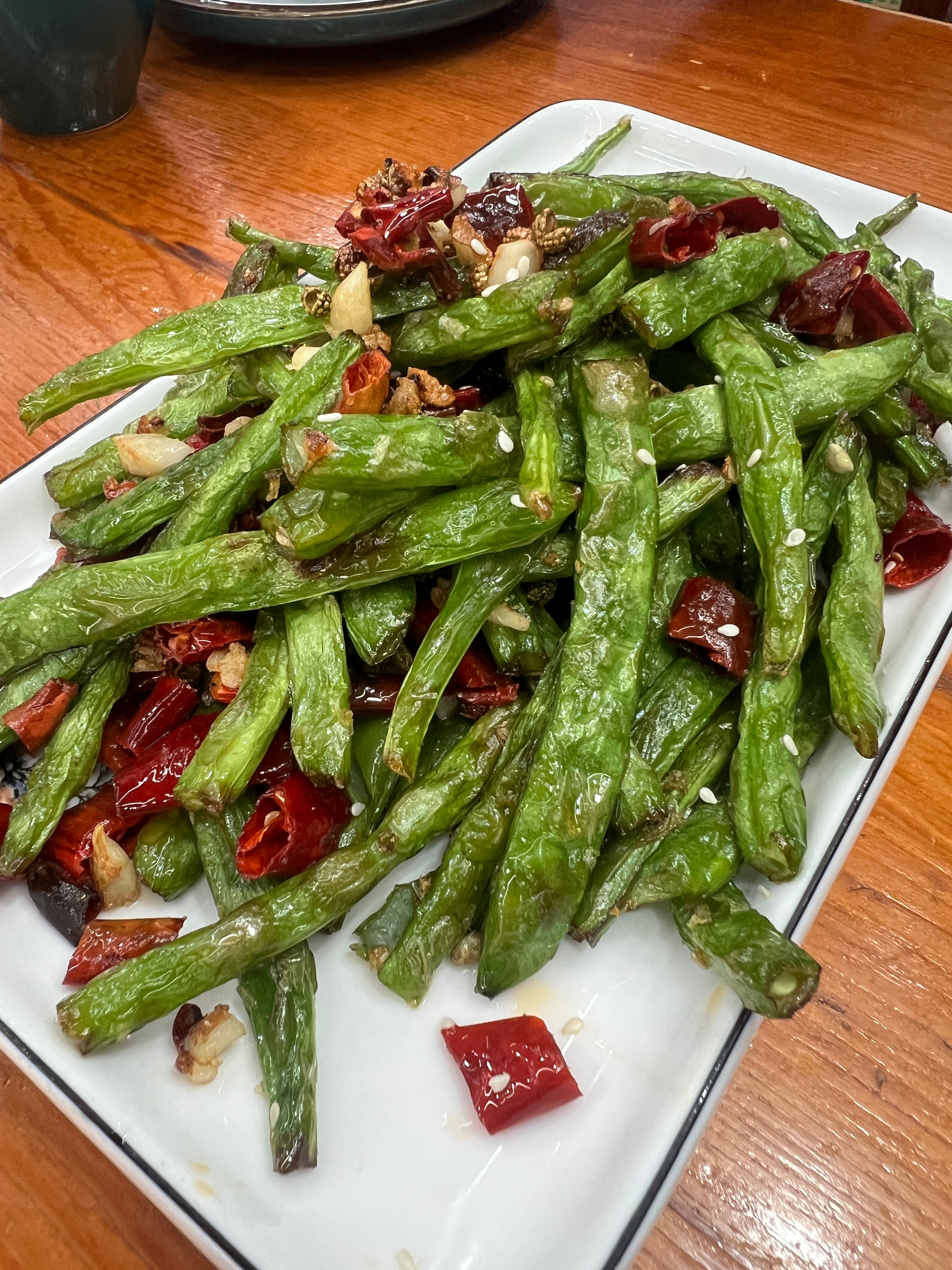 去四川饭店必点的三道菜:蒜香排骨,干煸四季豆,木须肉。
