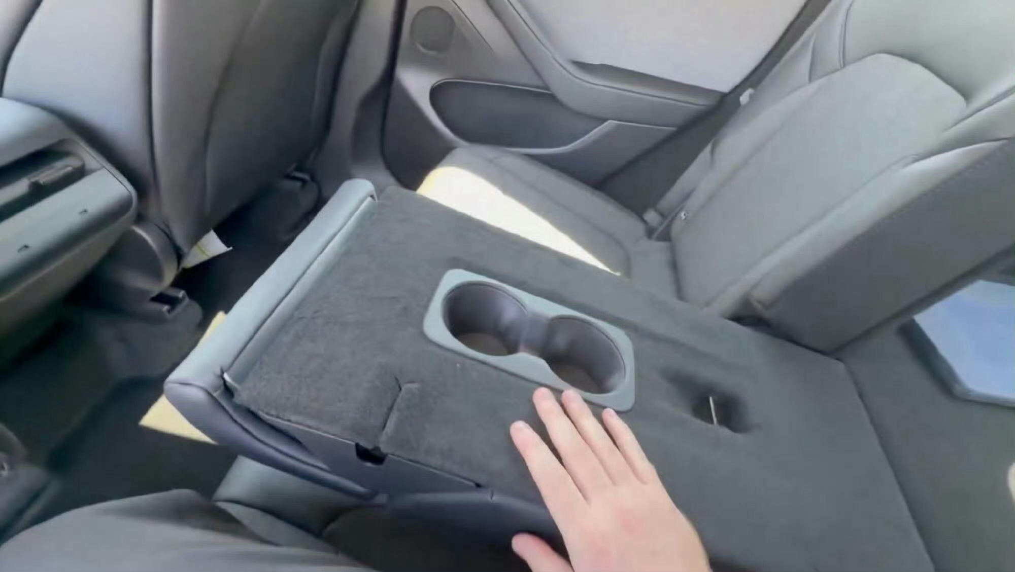 后排中央扶手放在靠背上,