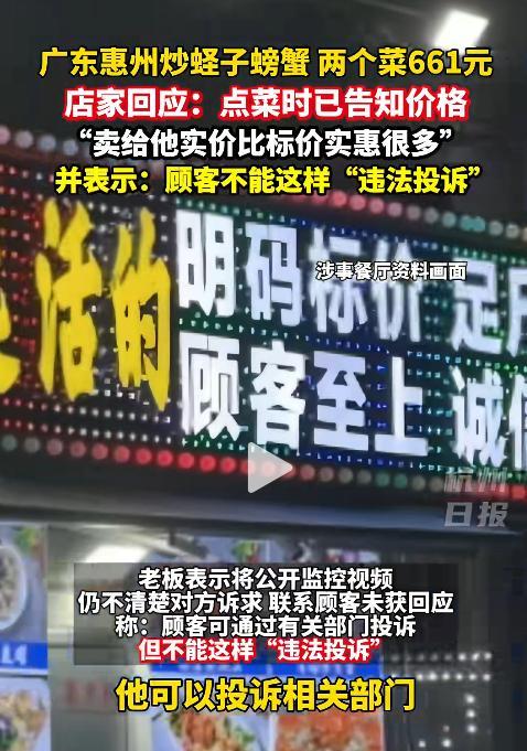 广东惠州,一男子国庆去海边旅游吃饭,点了炒蛏子和炒螃蟹两个菜,提前问价格时,店家并未明说,而是让他先吃,可等吃完去结账时,男子却傻了眼,两道菜竟要661元,事后店家也做出了回应,网友:这真是“一锤子”买卖! 眼看着国庆长假的脚步近了,小杨(化名)和室友盯着中国地图上那片蔚蓝的南海沿岸,心里像被海风吹着,痒痒的。 热门的三亚、厦门人山人海的画面仿佛已在眼前,他们不约而同地想寻一处清净。“惠州怎么样?”小杨指着那个不太起眼的名字,“听说有些海湾还没完全开发,人应该不多。” 这个提议像一颗投入静湖的石子,立刻激起了涟漪,两人在网上翻看着攻略:巽寮湾的月牙沙滩,双月湾的奇特地貌,还有那些性价比极高的海景民宿……越是了解,心思就飞得越远。 他们幻想着在没什么人的沙滩上散步,看潮水漫过脚印;而不是在热门景区里看人山人海,对“小众”和“清静”的共同渴望,让目的地一锤定音。 假期第一天,两人就已背上了塞满的行囊,公交、地铁,最后汇入高铁站涌动的人流,但他们觉得自己的方向与周遭奔赴著名景区的喧嚣格格不入,心中怀揣着一份“反向旅行”的小小得意。 到了惠州,空气里那股咸腥的海风,对他们来说就是最诱人的开胃菜,两人撂下行李,就直奔海边的大排档。 “总算到海边了,必须整一顿海鲜!”小杨搓着手,兴奋里带着克制,虽说想着靠海吃海应该不贵,但新闻里那些“天价海鲜”的阴影还是像背景音一样在脑海里嗡嗡作响。 两人在池子边逡巡了好几圈,看着标价,心里默默做着算术,最终还是没敢向那些生猛硬货下手。 “老板,来盘炒蛏子,再来个炒螃蟹。”他们选了最稳妥、看起来最“平民”的两样。 老板围着沾满油渍的围裙,闻言麻利地抓起网兜:“螃蟹要哪种?这个**嘛**,**XX**元一斤。” 他语速很快,那个数字和斤两的概念像耳边风一样,还没等他们在脑中进行价值换算,就已经飘过去了,另一盘蛏子的报价也是如此。 两人对视一眼,一种“外乡人”的怯意让他们没好意思追问细节。“反正就两盘炒菜,能贵到哪里去?”小杨低声对同学说,像是在安慰对方,也像是在给自己壮胆。 酒足饭饱的惬意感,在老板拿着那张皱巴巴的账单走过来时,戛然而止。“一共661元。”老板的语气平淡得像在报一道菜名。 小杨和同学脸上的笑容瞬间僵住,仿佛被海风冻在了脸上。661?这个数字像一记闷棍,敲得两人头晕眼花。同学下意识地接过账单,眼睛几乎贴了上去,逐字确认。 “这……”小杨喉咙发干,想问清楚这价格是怎么算出来的,是用了多大的蛏子,多珍稀的螃蟹?但话到嘴边,看着老板那副见怪不怪、甚至带着点“你爱付不付”的神态。 两人交换了一个憋屈又无奈的眼神,生生把质疑咽回了肚子里。 “扫码吧。”同学低声说,声音里带着一丝不易察觉的颤抖,支付成功的提示音此时听起来格外刺耳,像在嘲笑他们刚才那份“能贵到哪里去”的天真。 一走出店门,海风的咸味仿佛都带着一股被宰割后的屈辱感,刚才的隐忍瞬间化为了行动力。 “不能就这么算了!”小杨立刻掏出手机,不再只是私下吐槽,而是直接点开了官方旅游投诉平台的APP。 他详细写明了店铺位置、消费项目、金额,并上传了账单照片作为铁证,同学则在旁边补充细节,两人一唱一和,把一腔愤懑都化为了条理清晰的投诉文字。 让他们略感欣慰的是,投诉渠道异常顺畅,提交后不到半小时,就收到了文旅和市场监管部门已受理的短信回复,第二天上午,便有工作人员主动联系他们,核实具体情况。 店家表示:他们每一道海鲜的价格和斤数,在点单的时候都跟杨先生确认得一清二楚,交易过程是完全透明的。 但是那两名学生表示:自己当初点菜的时候,老板就模模糊糊的不肯说价格。 店家解释说,这只螃蟹重2.4斤,进货成本就接近160元一斤。再加上3斤蛏子,每斤68元,还有两个人的茶位费6块钱。这么一笔一笔加起来,不多不少,正好是661元。 现场的沟通显然是失败了,于是双方不约而同地开辟了“第二战场”——公共舆论场。杨先生选择付款后,转身就把自己的经历发到了网上,贴上“海鲜刺客”的标签,迅速引爆了话题,10月7日就冲上了热搜。 店家也没闲着,他们公开回应,不仅欢迎杨先生去有关部门投诉,还抛出了一个重磅炸弹:准备公布监控录像自证清白,店家还表示,事后曾尝试联系小杨但没联系上。 信息来源:杭州日报