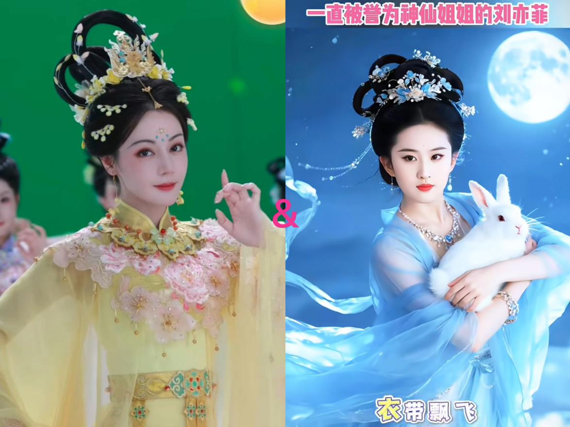 一觉睡醒, 刘亦菲和迪丽热巴的嫦娥造型讨论 全网都刷爆了! 刘亦菲的清冷感确实是老天赏饭吃,粉衣捧玉兔的模样,眼神里自带广寒宫的孤寂劲儿,跟陈红的经典版比都毫不逊色,不愧是“神仙姐姐”,往那一站就把中式美学的留白意境演活了。 迪丽热巴敦煌飞天般的舞姿配全息特效,把传统与科技融合得恰到好处,这明明是另一种鲜活的仙子模样。 刘亦菲是刻在骨子里的古典仙,迪丽热巴是焕新的文化符号。你更喜欢哪种嫦娥的美感?来评论区聊聊~