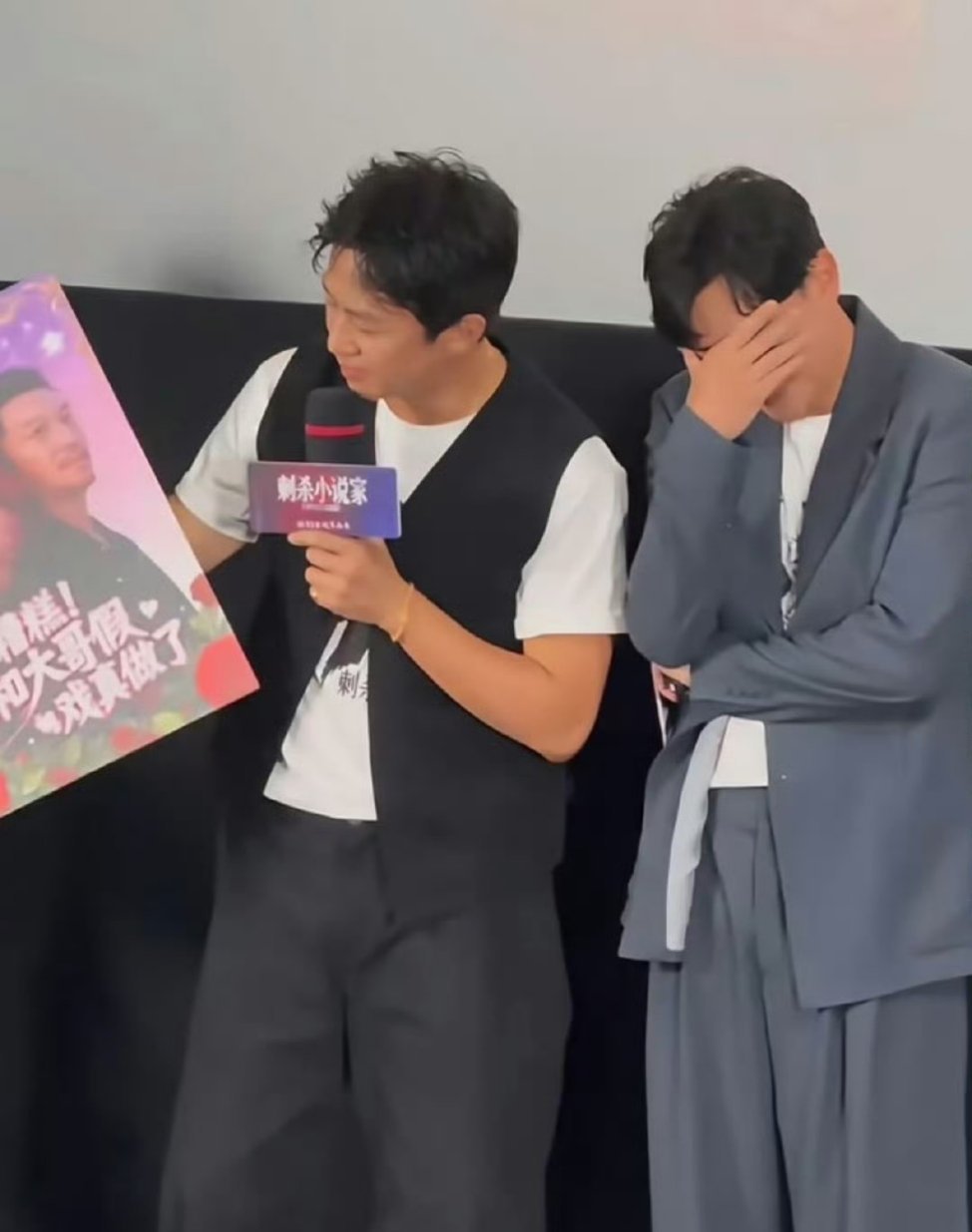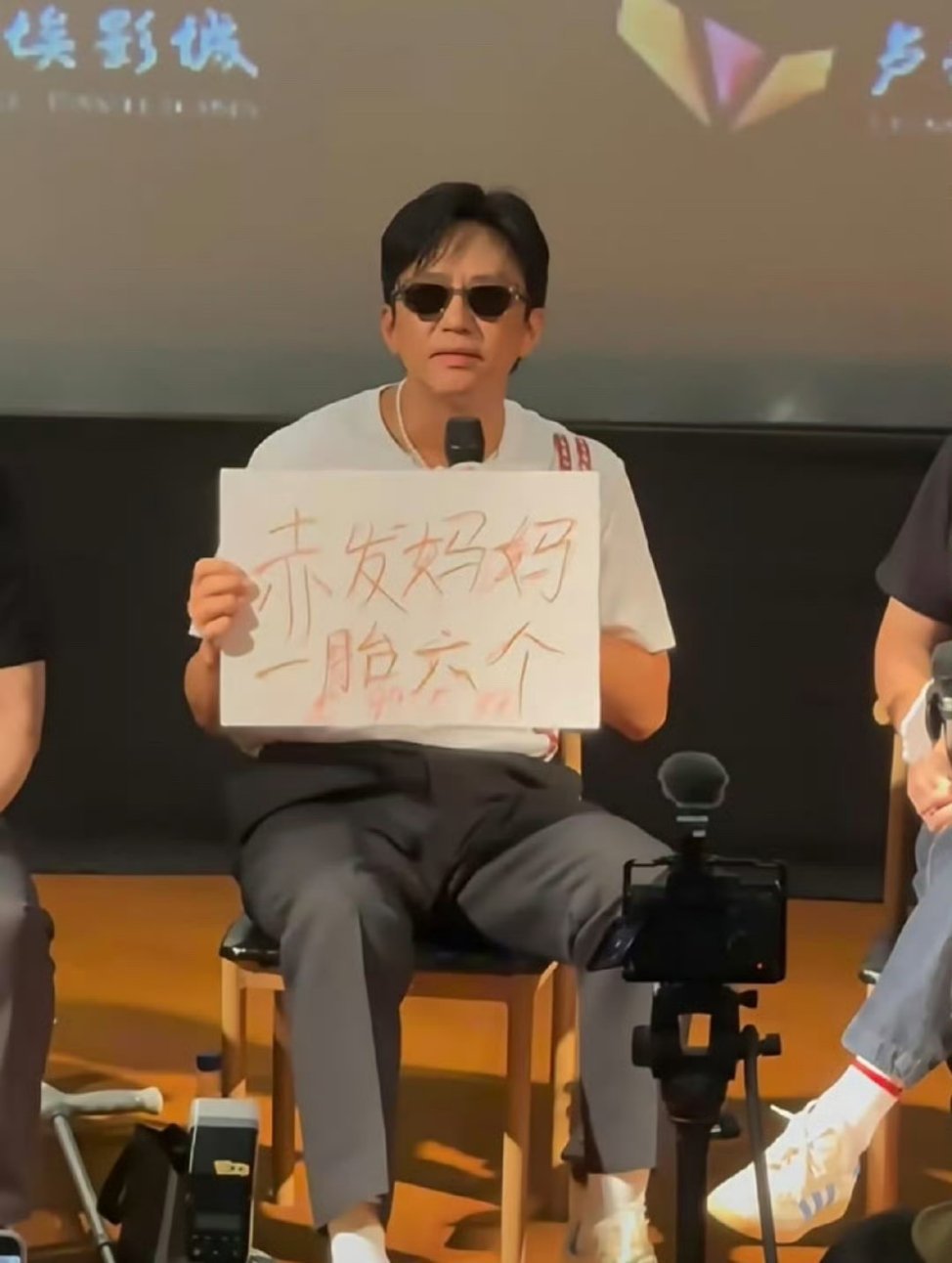 邓超举着“赤发妈妈一胎六个”的纸牌