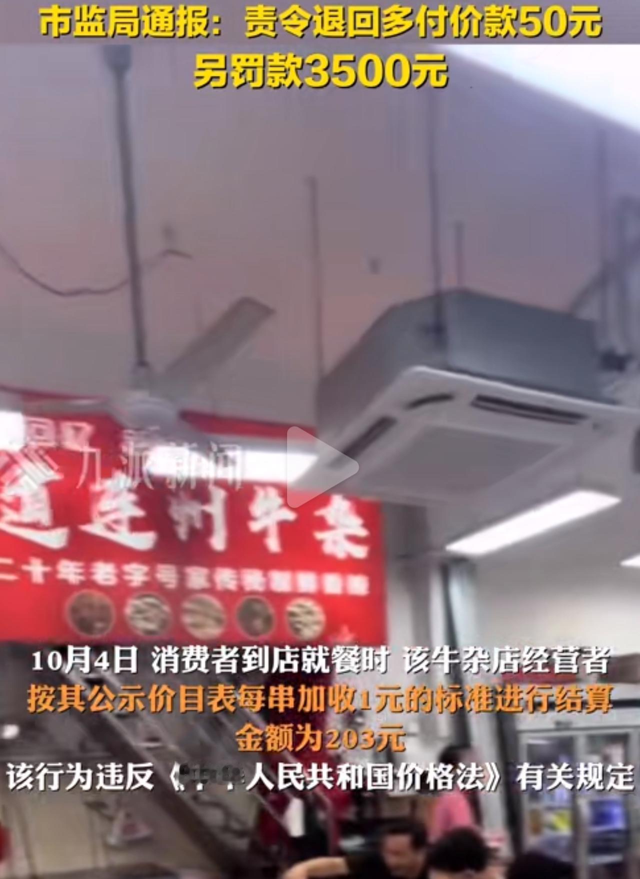 牛杂店结账当场改价!质疑反被围堵,这操作真够恶心人 吃顿牛杂居然碰到“临时涨价”?广东连州这家店太不地道了——墙上价目表压根没动,国庆结账时每串却偷偷多收1块钱。消费者看着203块的账单觉得不对劲,刚开口问,店员直接拿红笔在墙上价目表上改,还撂狠话“有本事你去举报”,好几个人围着他逼逼叨叨施压。 消费者当时又气又懵,明明进门时瞅着标价不是这数,怎么掏钱的时候就变了?本来想好好跟他们掰扯,没料到商家这么横,一群人围上来那架势,吓得他心里发毛,赶紧偷偷摸出手机录了视频留证。 还好监管部门办事利索,两天就查明白了,商家这是违反了《价格法》,不光逼着退了多收的50块,还罚了3500块,现在连州整个餐饮行业都在查价格问题。但不少人都觉得,3500块对这种故意宰客的商家来说,根本不算啥,毕竟国庆这几天赚的,说不定比罚款多好几倍。 开店想赚钱没毛病,但要涨价就得明明白白提前说,别搞这种“结账才改价”的破猫腻。咱们消费者碰到这种事别慌,先拍价目表、留好账单,要是被围堵就赶紧报警,打12315投诉时记得要回执单。做生意靠的是诚信,耍这种小聪明,早晚把自己的店搞黄!牛杂收费 牛杂行情