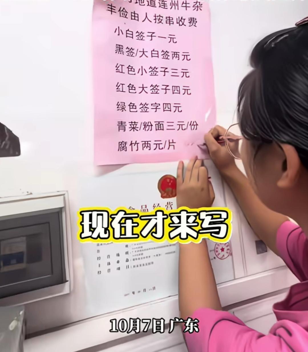 10月7日,女子去广东旅游吃饭结账时告知涨价,饭店临时往价格表上写涨价信息。女子