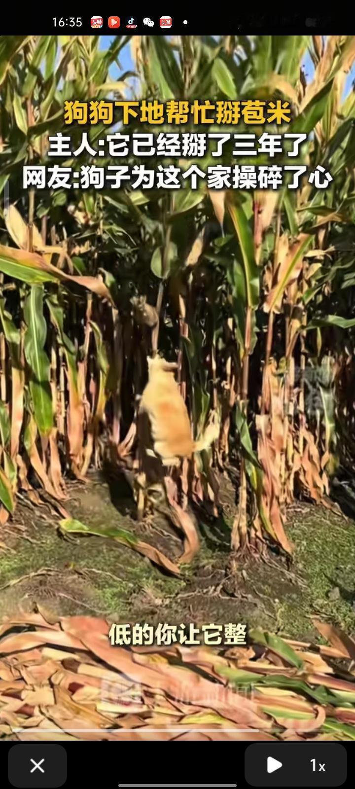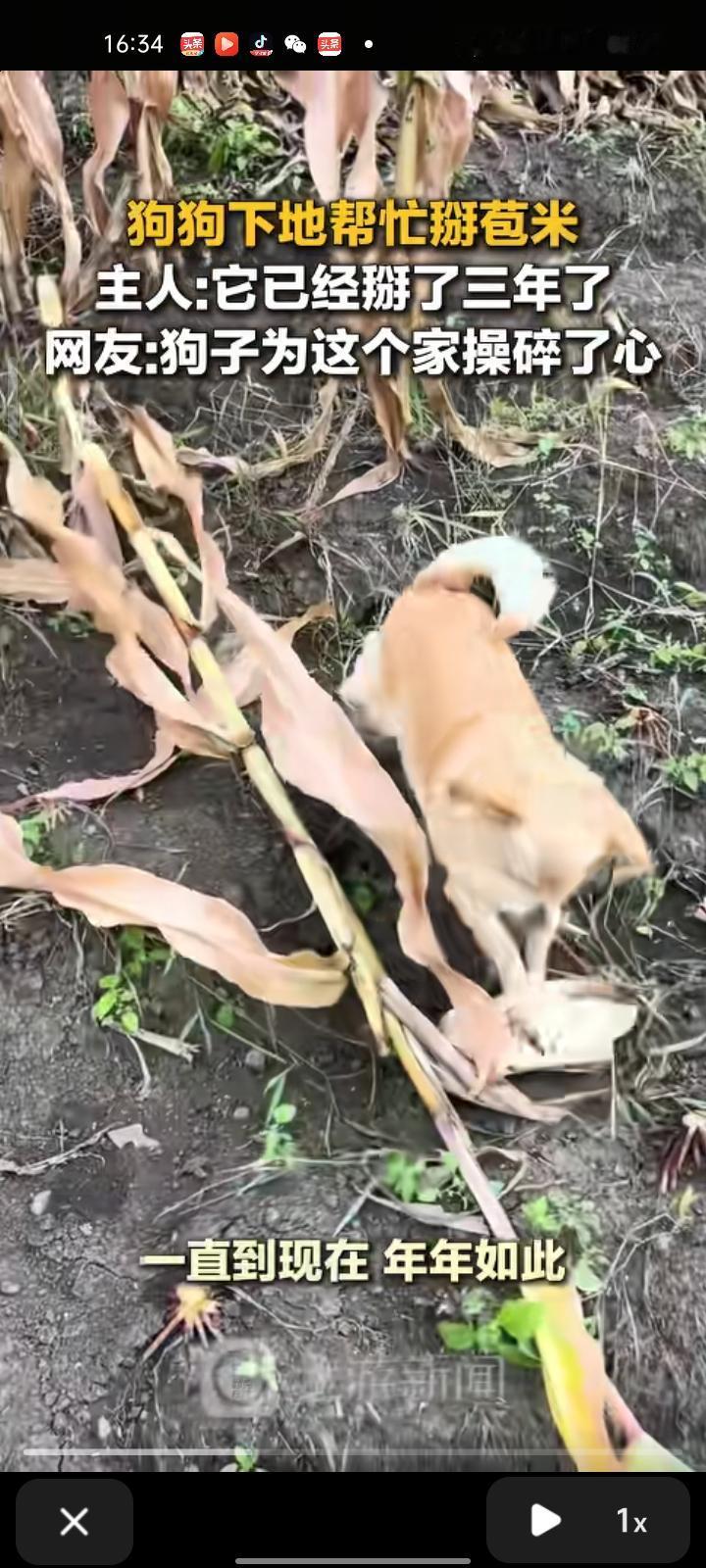 10月7日,黑龙江牡丹江。网友晒视频称,狗狗下地帮忙掰玉米,它是从21年起来到自家,22年就开始跟随,至今已持续三年。他们还没开始干的时候,狗狗就出手了,挑战性比较强,每次都是选最高的、够不到的那种,低的对它没兴趣