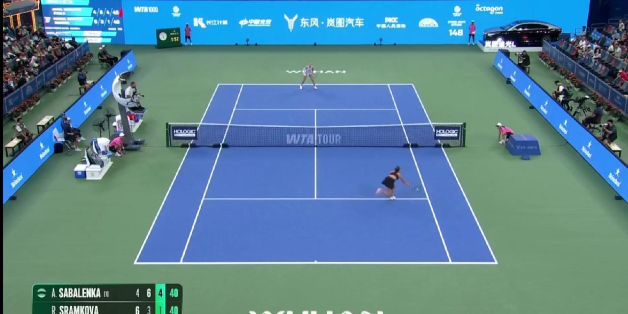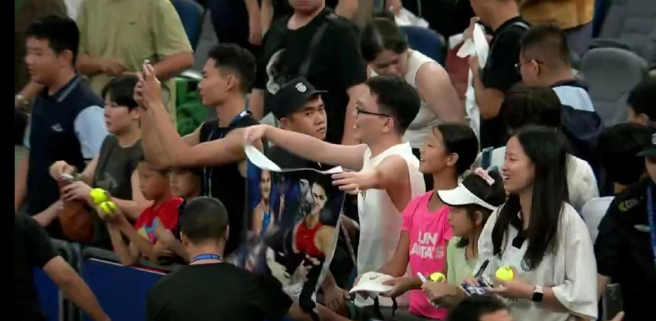 2025武网|女单第二轮,美网后首次亮相的世界第一萨巴伦卡以4-6 6-3 6-1逆转斯拉姆科娃,卫冕首战涉险过关。作为赛会三冠王,她也将在武网的连胜扩大到了18场。 本场比赛萨巴伦卡首盘状态慢热,受美网后休养影响,未能适应斯拉姆科娃的球路,以4-6先丢一盘。第二盘她迅速调整,凭借强势进攻掌控节奏,以6-3扳平比分;决胜盘更是完全占据主动,仅让对手拿到1局,最终以6-1锁定胜局。 本场比赛观众席上挥舞虎妞应援图案的球秘相当多,可见萨巴伦卡在华球迷数量很多,上座率挺高! 接下来,萨巴伦卡将和萨姆索诺娃隔网相对争夺八强席位。