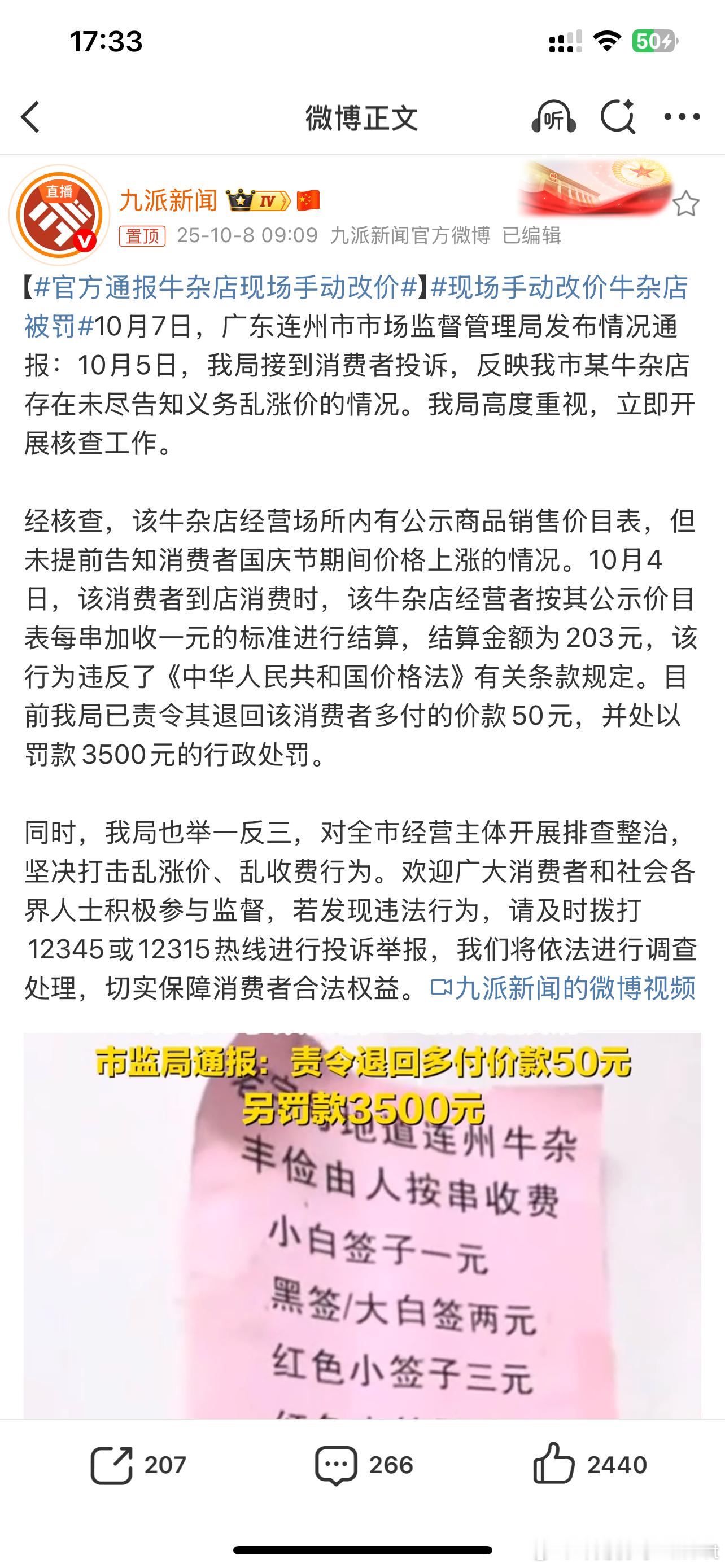 官方通报牛杂店现场手动改价典型的捡了芝麻掉了西瓜[允悲]现在这个年头不要当大家是