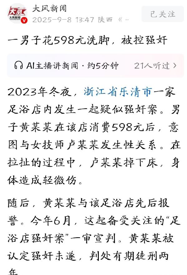 浙江乐清,37岁的黄某在酒精的作用下,试图强行侵犯足浴店的女技师卢某,卢某不从,并从床上掉下,受到轻伤,随后报警,黄某因强奸未遂被判刑两年。 2023年12月9日,黄某与朋友喝酒庆祝后,前往当地的一家足浴店。经过一番选择后,黄某选了一个598元的SPA项目,而女技师卢某进入包间为他提供服务。酒精的作用下,黄某的行为开始失控。他突然强行搂抱卢某,并试图扒掉其内衣,企图与其发生性关系。卢某的强烈反抗使得黄某未能得逞,甚至造成了卢某从按摩床上摔下,后脑勺磕伤。 尽管卢某最终避免了实际伤害,但黄某的行为已经构成了强奸未遂。事后,黄某不仅未意识到自己行为的严重性,还向卢某提出协商医疗费用,最终因未能达成一致,双方报了警。警方介入后,黄某被拘留并最终取保候审,支付了10000元以获得卢某的谅解。然而,黄某的行为依然触犯了法律,最终被判处了两年有期徒刑。 在分析黄某行为时,首先需要明确强奸未遂的法律构成。根据《刑法》第二百三十六条规定,强奸罪是指以暴力、胁迫或者其他手段,违背妇女意志,强行与妇女发生性行为的行为。在本案中,黄某在没有卢某同意的情况下,强行搂抱并试图扒掉其衣物,显然具有强奸的主观故意。根据犯罪未遂的定义,犯罪未遂是指行为人已经着手实行犯罪,但由于行为人意志以外的原因,未能完成犯罪。 黄某的行为已经着手实施强奸,且卢某的反抗未能使得其完成犯罪行为,这符合刑法中的强奸未遂要件。虽然卢某及时反抗且未遭到实际侵犯,但黄某已经对卢某的人身权利造成了实际的威胁和紧迫危险,因此,黄某的行为应当认定为强奸未遂。 根据《刑法》第二百三十六条的规定,强奸罪的处罚为三年以上十年以下有期徒刑,而强奸未遂则可以比照既遂犯从轻或减轻处罚。黄某因强奸未遂被判处两年有期徒刑,符合对未遂犯的从轻处罚原则。尽管黄某试图通过支付赔偿并获得卢某谅解,但其行为依然构成了对女性尊严的严重侵犯,应依法承担刑事责任。 在案件审理过程中,黄某提出了辩解,称足浴店不正规,自己支付了钱就应该得到服务,并表示卢某因害怕被处罚而谎报了强奸事实。对此,我们从法律角度进行分析。 调查结果显示,足浴店并未提供任何不正当服务。黄某所谓的“足浴店不正规”的说法缺乏证据支持,且卢某明确表示自己从未同意与黄某发生性关系。这一观点不仅不能成立,还暴露了黄某对违法行为的错误认识和推卸责任的态度。 根据法律规定,即使消费者支付了费用,也不能因此获得侵犯他人权利的许可。黄某的行为是典型的违法行为,违反了卢某的性自主权。无论在什么样的场所,未经他人同意强行侵犯他人身体的行为都应当依法追究责任。 卢某的反抗行为以及摔伤的事实,清晰证明了她并未同意黄某的行为。根据《民法典》第三百二十条的规定,人身权利和人格尊严受法律保护。黄某的行为直接侵犯了卢某的人身权利,且其试图以暴力手段违背卢某的意志进行性行为,构成强奸未遂。因此,卢某的证词和相关证据有力支持了她的指控。 在刑事案件中,被告人积极赔偿被害人的损失并获得谅解,可以在一定程度上作为量刑时的从轻情节。然而,获得谅解并不能完全免除刑事责任。黄某虽然支付了10000元并获得了卢某的谅解,但其犯罪行为依然具有严重性,对卢某的人身权利构成了严重威胁,法院最终判处其有期徒刑两年,依法追究其刑事责任。 本案中,黄某的强奸未遂行为严重侵犯了卢某的性自主权,且其酒后失控并误认为自己付钱就能获得服务的错误观点,不仅反映了个别人的法律意识淡薄,也暴露了足浴店等场所管理不严的问题。对待性侵犯罪,法律绝不容忍,任何人在面对他人身体权利时,都应当严格遵守法律规定,尊重他人的人格尊严和自主权。 本案的判决再次提醒我们,无论因何种原因,酒后失控都无法成为违法行为的借口。对于任何侵犯他人身体的行为,法律应当严厉追责。希望通过本案,社会能够更加注重性别平等和对女性权益的保护,避免类似事件的发生。同时,我们也呼吁社会各界加强对公共场所的监管,确保消费者的安全与尊严得到尊重。