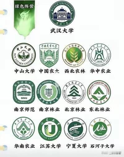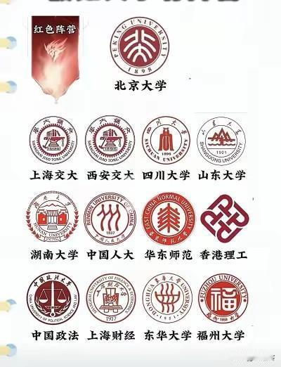 52所双一流高校,其中包括39所985还有13所211双一流高校校徽,共分为4种不同颜色的阵营,你觉得哪种颜色的校徽和搭配是你最喜欢配色最好看的呢?欢迎大家评论区留言探讨交流。 其中紫色阵营的成员主要包括清华,南大,南开,南京理工,香港中文等知名高水平建设大学。 其中红色阵营的成员主要包括北大,川大,上交,西交,山大,人大,湖南大学,华东师范等985高校。 其中蓝色阵营成员主要包括浙江大学,复旦,中科大,天大,北师大,厦大,华南理工,大连理工,中南,电子科大,北航,西工大,重庆大学。 其中绿色阵营成员主要包括武汉大学,中山大学,中国农业大学,西北农林科技大学,华中农业,南京师范,北京林业,东北林业,华南农业,石河子大学。 可以发现985高校当中蓝色阵营的成员最多13所985都是使用的蓝色主体色作为自己的校徽颜色,紫色的成员最少只有清华,南大,南开3所985使用了紫色主体色调作为自己的校徽颜色。 而绿色阵营的成员除了武汉大学,中山大学2所顶尖985外,其他的几乎都是一些农业,农林相关的院校,这应该和属性有关,毕竟农林农业都和植被树木密切相关所以说大概率这种原因选择绿色作为自己的校徽主体色调吧。