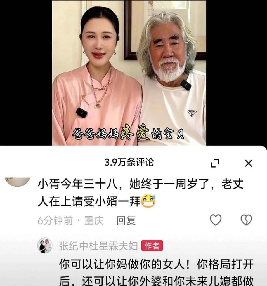 张纪中上热榜了,起因是他发帖庆祝女儿一周岁生日,有网友留言,“我要做你女婿”,张