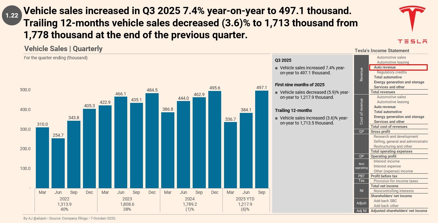 奔驰第三季度汽车销量为441,500辆,特斯拉销量为497,099辆,特斯拉的销量比梅赛德斯多55,599辆。