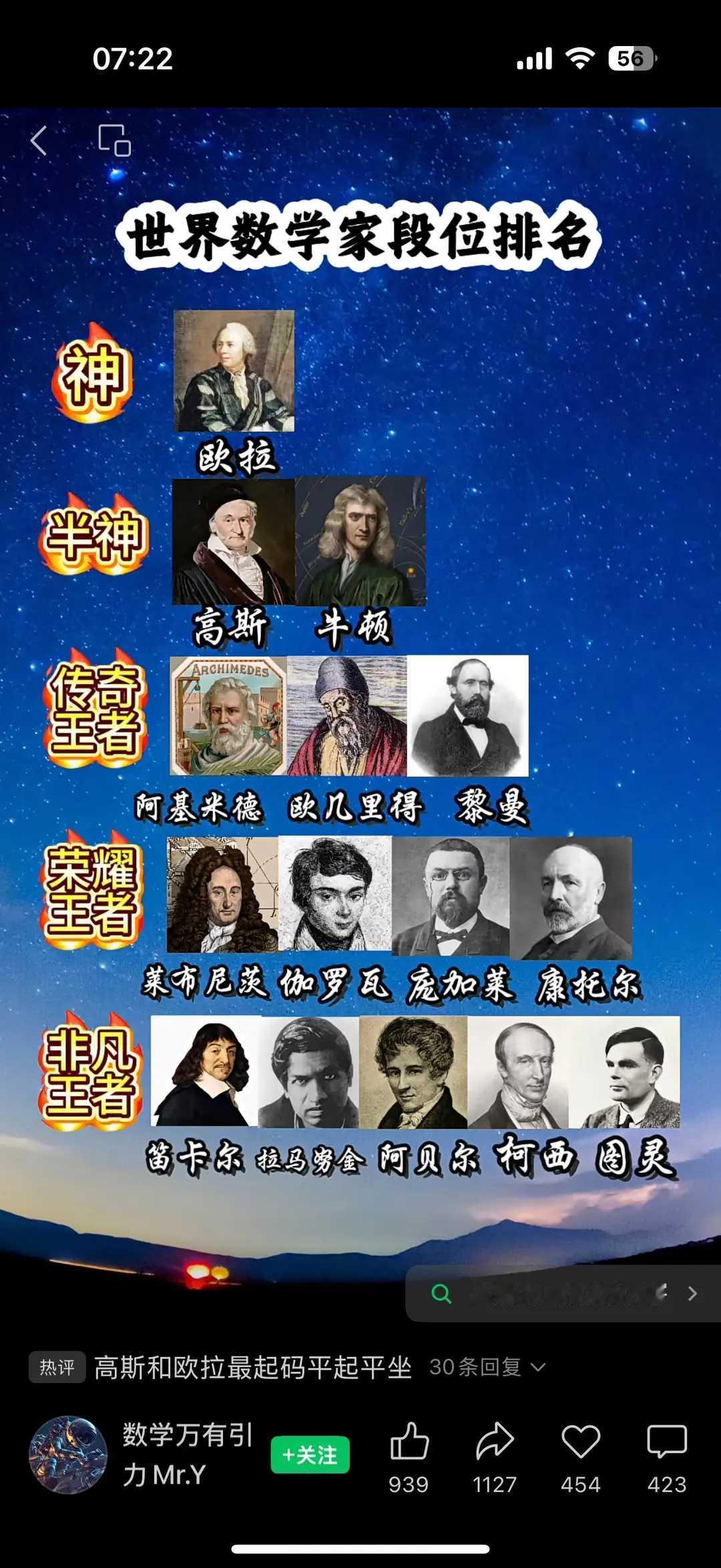 数学家排名这事儿,还挺有争议。像Academic Influence网站排出2010 - 2020年间世界十大最具影响力的数学家,德夫林居首,陶哲轩第二。不过这排名未必权威,大数据介入后和咱直觉认知可能不同。 但也有人对数学家排名很不满。有人指出中国数学人热衷排名,却默认“前排不能有中国人”。要知道中国可是人类数学发祥地,几何、代数这些精髓都是咱老祖宗创造的。可如今世界数学家榜单前100名难见中国人身影,这落差实在让人感慨,排名背后的文化倾向值得深思。