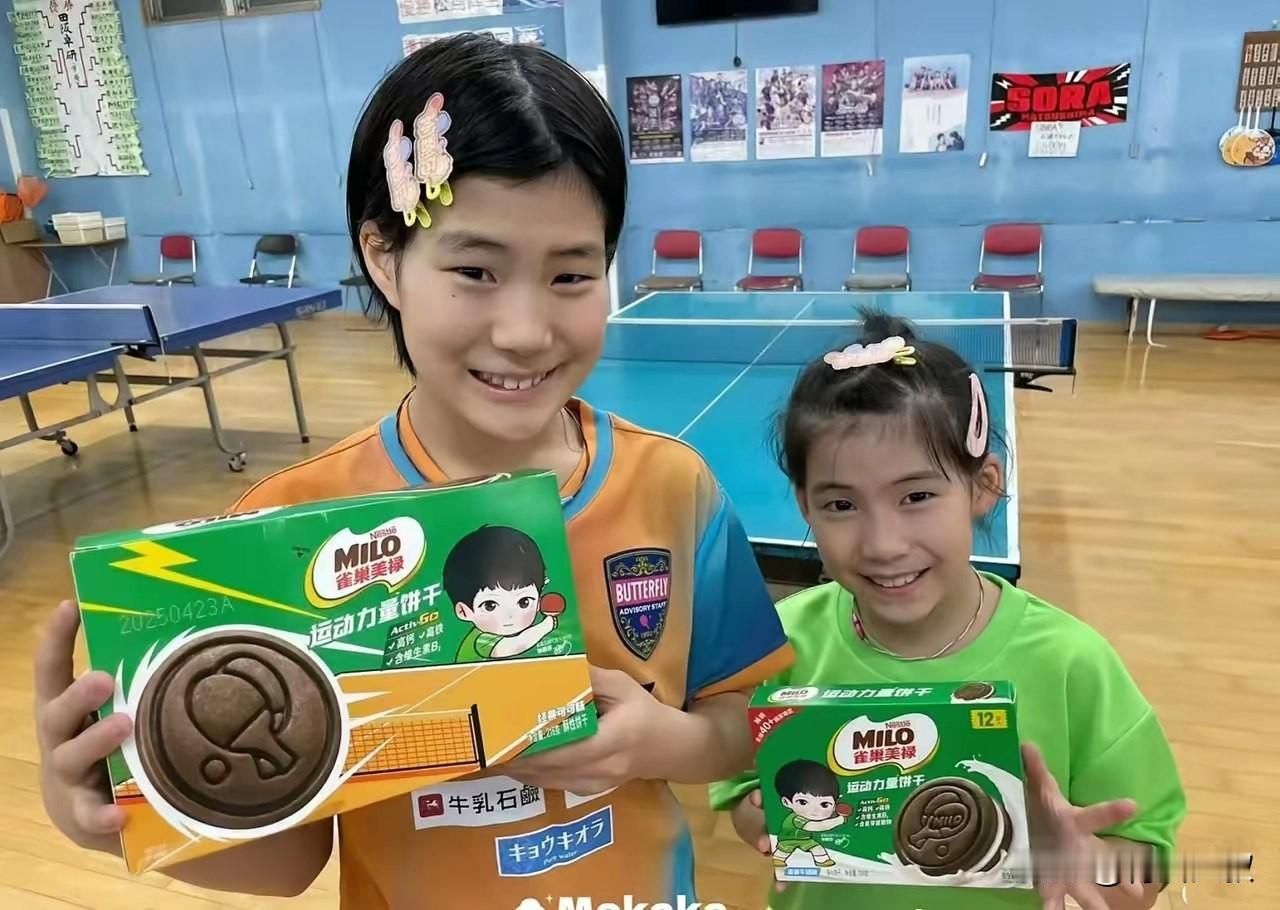 笑死我了!松岛辉空的两个妹妹分偶像不是辉空哥哥,也不是张本美和,而是孙颖莎! 这一点松岛辉空肯定知道的, 中国大满贯打完, 回家的时候, 给他们带回了, 孙颖莎代言的饼干。 两个小家伙收到后可开心了, 还拍照传到了媒体上! 不过美空长得也太像辉空了[捂脸]