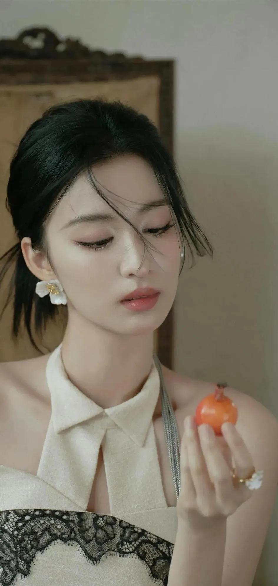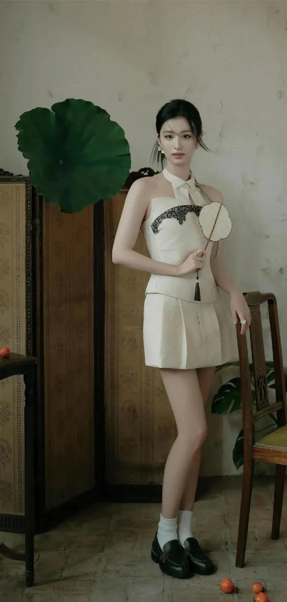 王楚然新写真,古韵与时尚的极致碰撞! 王楚然新写真一释出就惊艳众人! 她身着米白色独特挂脖套装,领口精致蕾丝花边,在复古背景衬托下,古典优雅与现代时尚完美融合,细节满是高级感。花朵造型耳环灵动俏皮,手持圆润果实或精致团扇,似从画中走出的古典美人,眼神纯真温婉,甜美元气。不经意散落的发丝随风飘动,更添柔美风情。 这组写真把古韵与时尚融合得恰到好处,太绝啦! 王楚然 写真美照