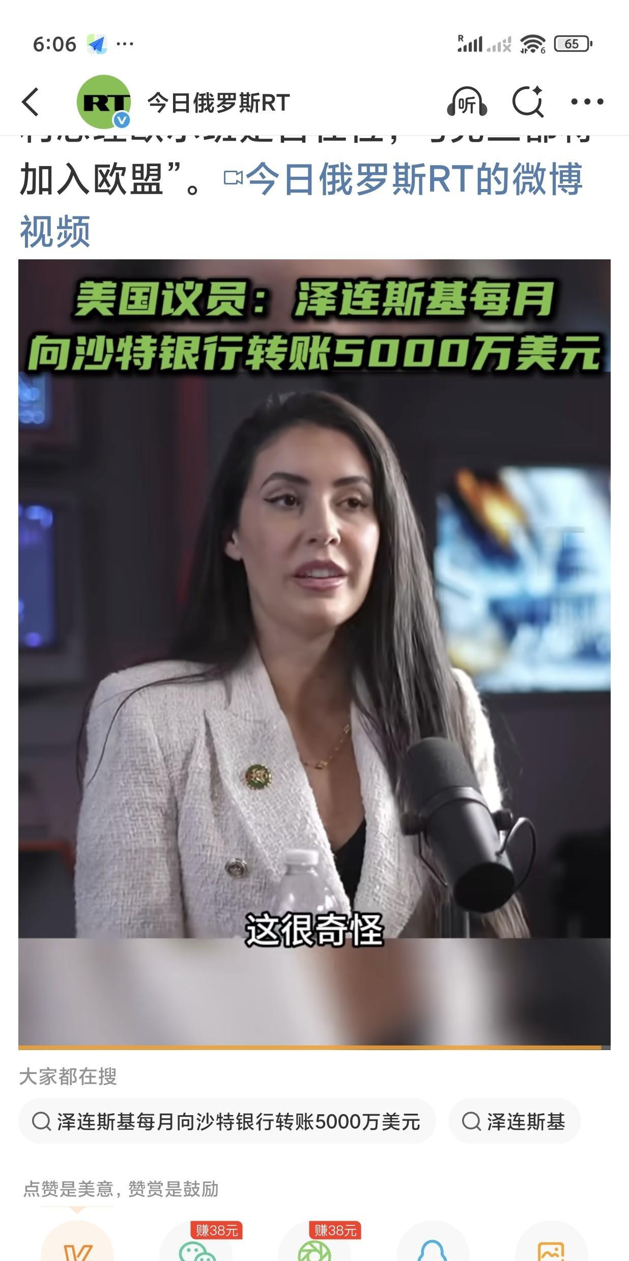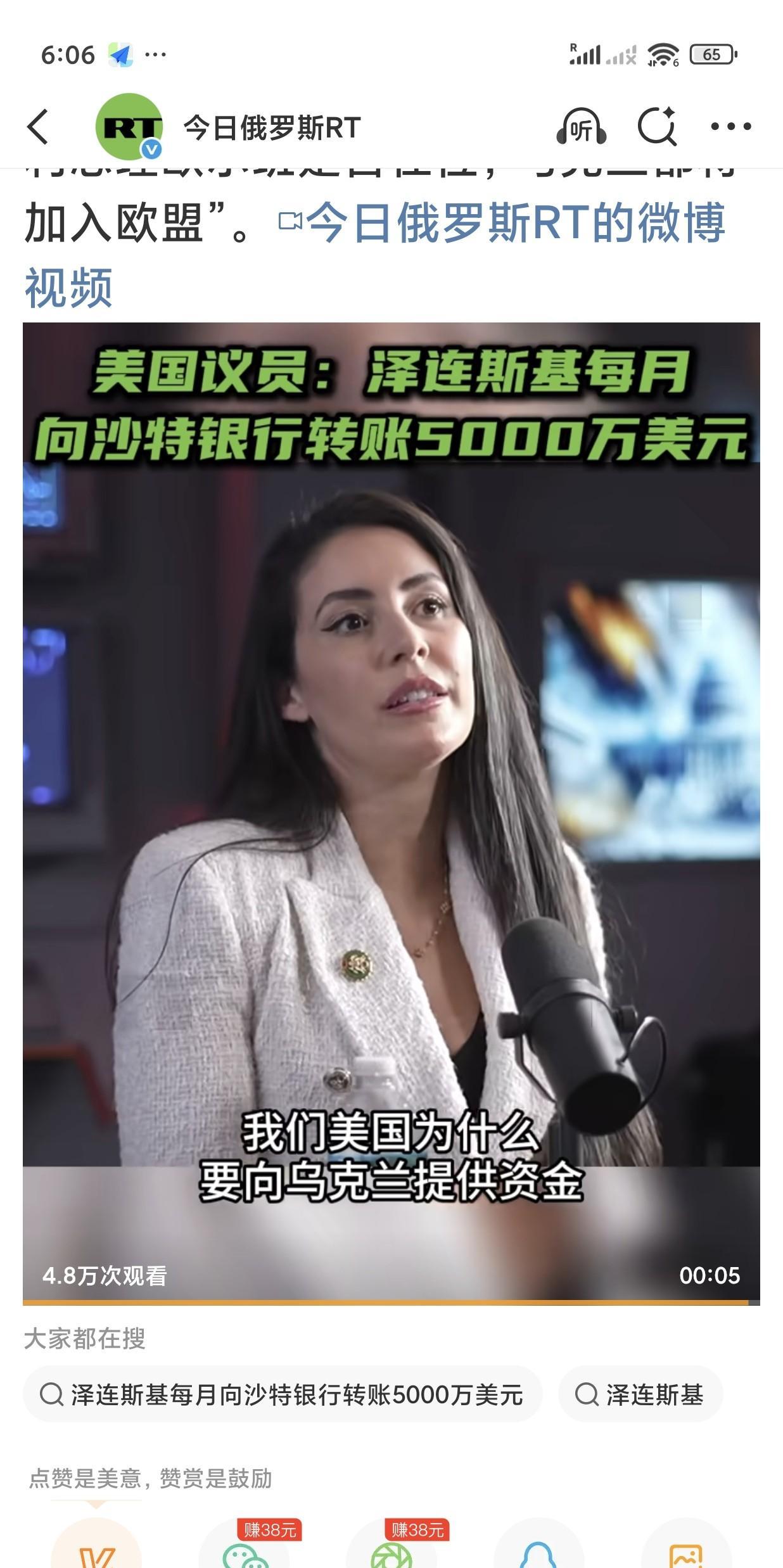 RT报道: 当地时间10月7日,美国众议院共和党议员安娜·卢娜在接受采访时质问,“我们美国为什么要向乌克兰提供资金?显然,泽连斯基每月向某家沙特银行转账5000万美元,这很奇怪”。 尽管这位议员没有具体说明她从哪里获得这些信息,但基本传递出两个方面的信息—— 美国在向乌克兰提供资金; 传言泽连斯基“不干净”,不是空穴来风。 但泽连斯基每月向自己账户转款5000万美元还是有些夸张。