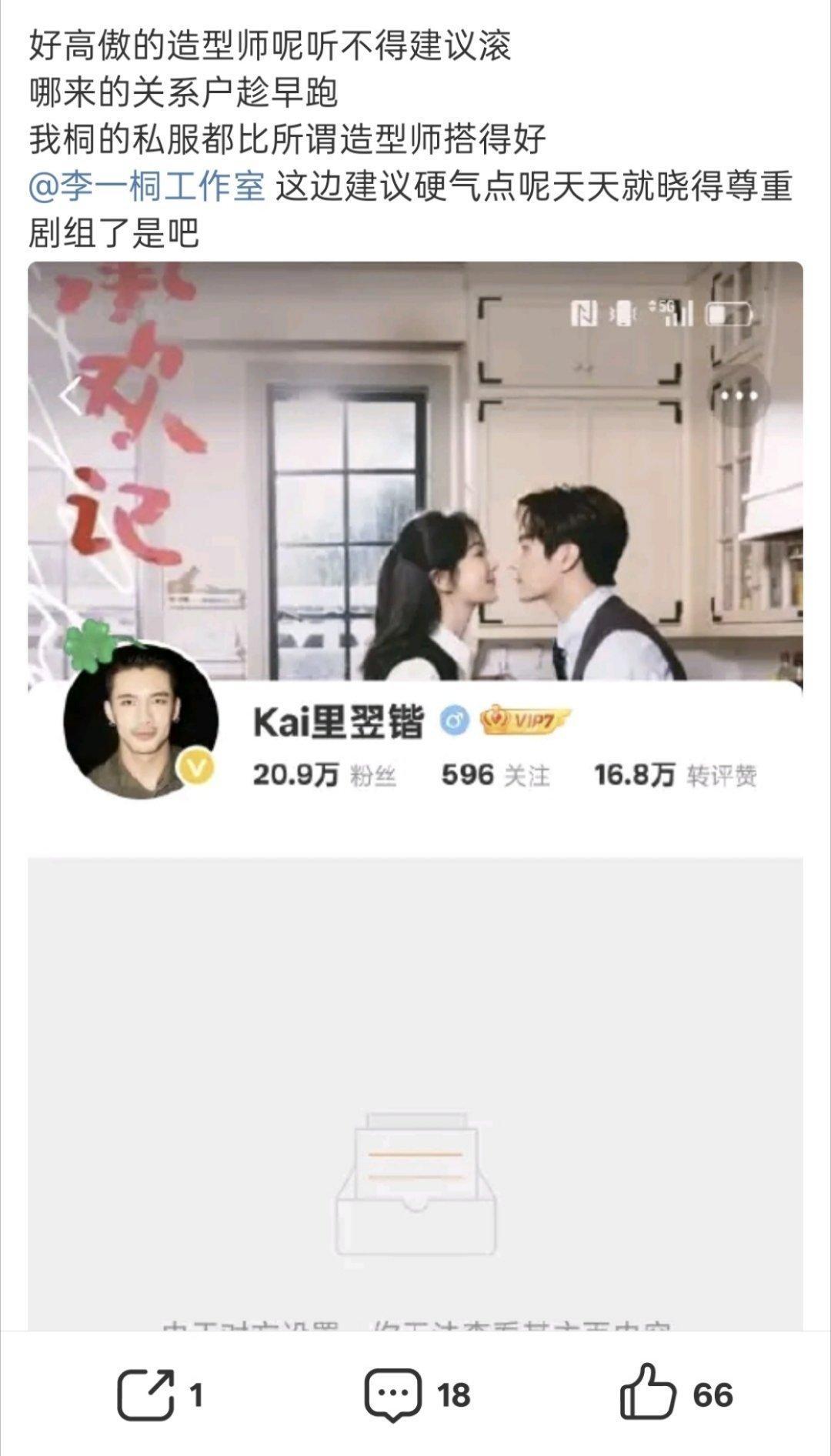 tg.美人余造型师拉嘿lyt粉丝[傻眼]李一桐美人余造型疑似抄袭许我耀眼