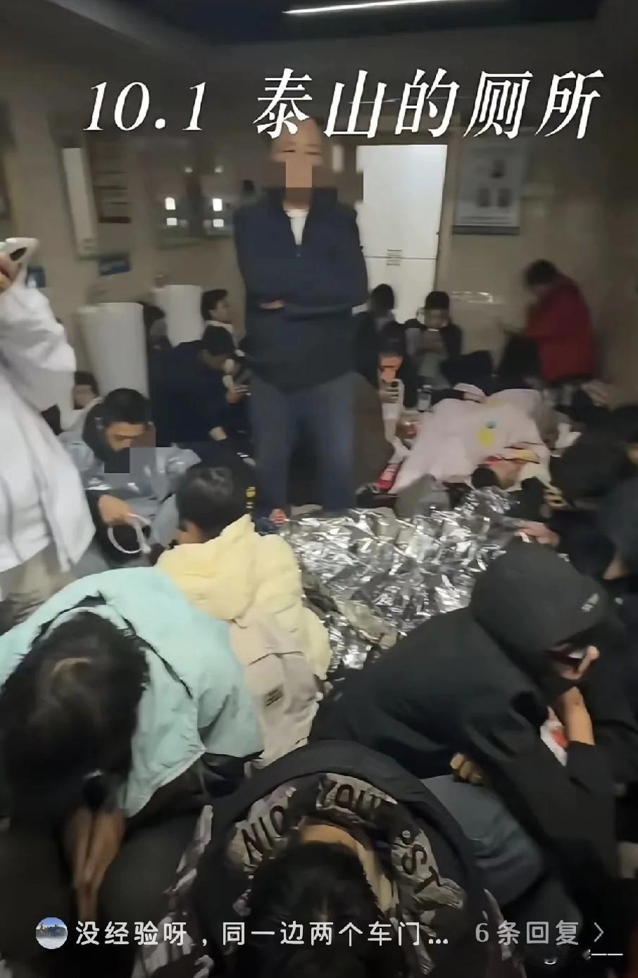 看,这就是我长假期间不去旅游的理由! 一边是无处如厕; 一边是挤在厕所里休息加过夜; …… 每年长假,我除了回300公里左右的老家,然后就是在老家的躺椅上看高速上的各种堵车、各处景点的各种人山人海…… 那时,我就在想一件事: 除了必须的节日回老家探亲外, 真有有必要去各处景点“旅这个游”吗? 你看高速长龙,有人憋不住了直接就地解决。 你看景区突降大雨,气温骤降,有人扛不住了,直接在厕所挤暖…… 朋友说,这次泰山顶的厕所,没敢进去,走到门口给我熏出来了!硬生生憋到下山!佩服能在厕所睡觉的人[尬笑]。 大家说说,年年如此,为啥年年还有这么多人花钱买罪受呢?