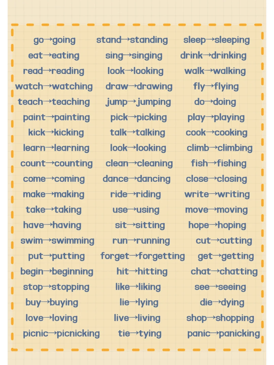 ⚡动词ing变化规则梳理➕练习📖 💡有你没接触过的,赶紧点赞收藏学起来! 爱好:整理知识点📖,做孩子们爱的手账笔记🌵! 分享系统语法知识,从初级到中级再到高级,脱传统语法的枯燥,编写了大量的口诀,由易到难,通俗易懂,赶紧收藏学起来吧。