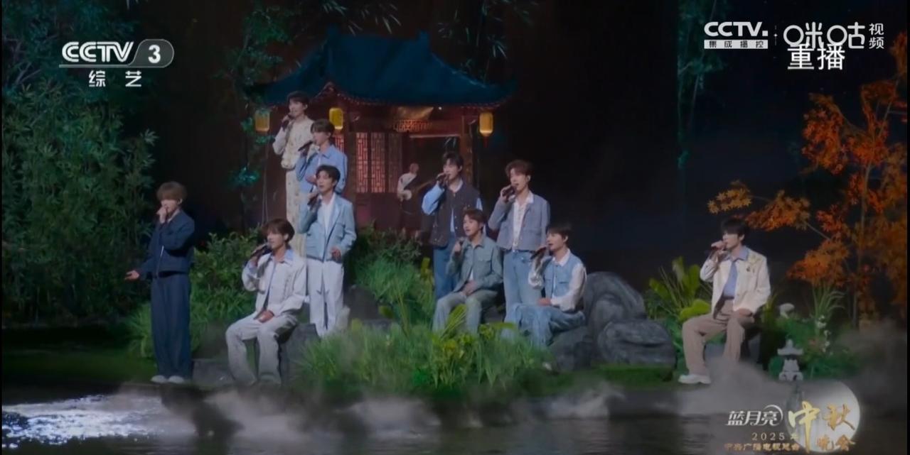 央视中秋晚会的这个节目,10人同台演唱一首歌。 10名男生,同样的发型,同样的音调,同样的表情,同样的女人味,同样的妩媚,同样的让人听不懂。 歌名为《月亮照山川》,歌词内容与歌名毫无关联。 这样的作品居然能登上中秋晚会这样的大雅之堂。 这样的10名男生究竟是靠什么打动了导演组呢?