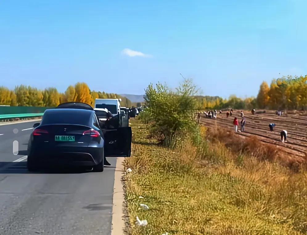 内蒙古文旅直接懵了!国道边停着50多辆车,全是游客忙着在地里捡土豆[捂脸][捂脸