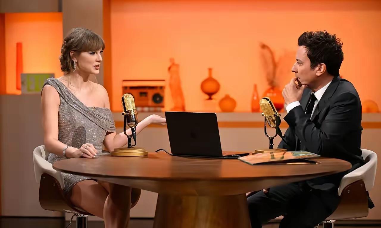 10月6日,泰勒·斯威夫特亮相吉米·法伦主持的《今夜秀》。她身着朱塞佩·迪·莫拉比托的水晶垂褶迷你裙,搭配同色系厚底高跟鞋,完美展现了令人艳羡的大长腿。妆容淡雅、秀发高盘的她,既优雅大气又性感迷人,韵味十足。在互动环节中,她表情生动,不失俏皮本色。