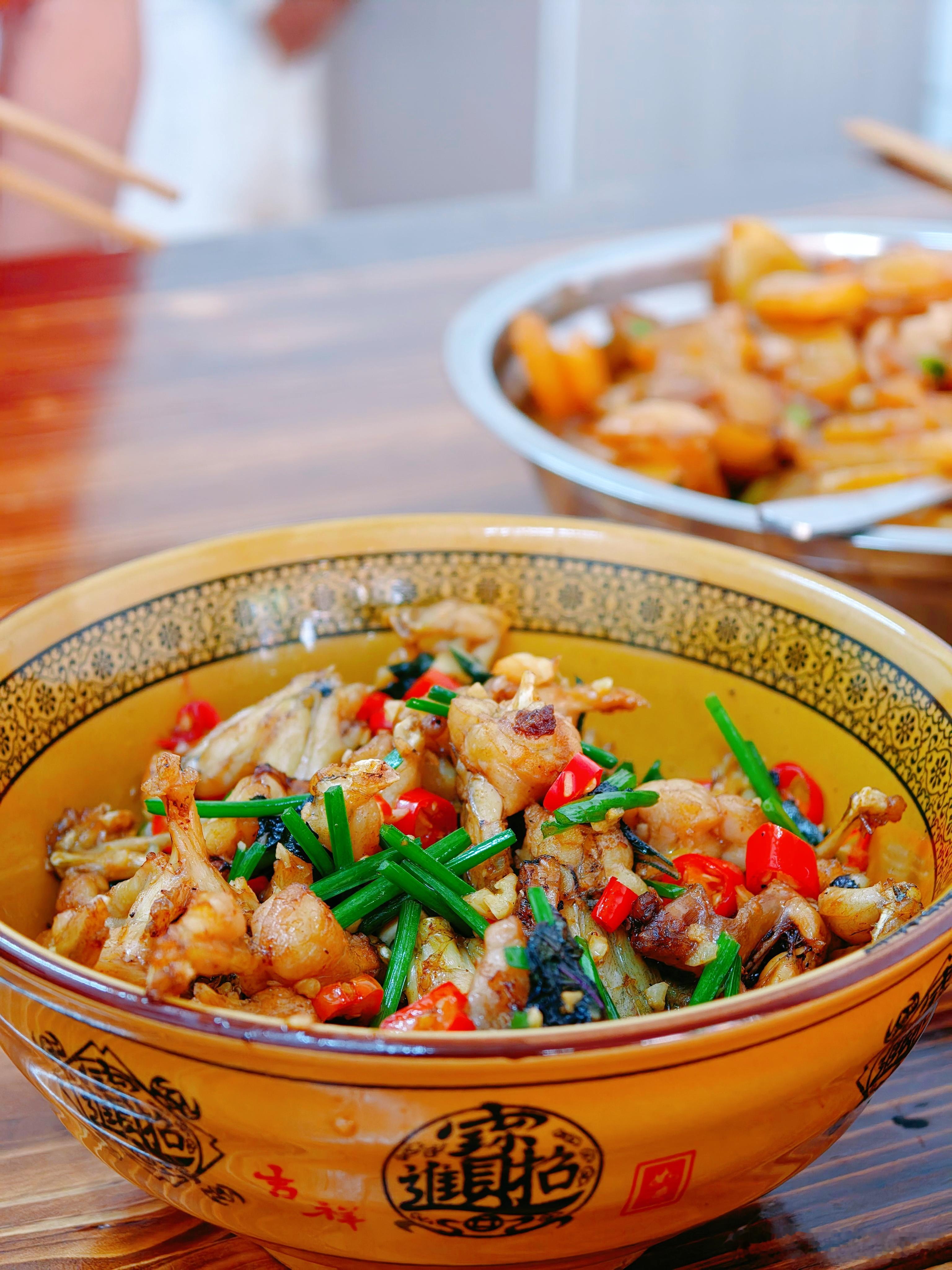 有炒青蛙、鳝鱼、驴肉,还有金钱蛋、土豆烧肉、溜白薯。