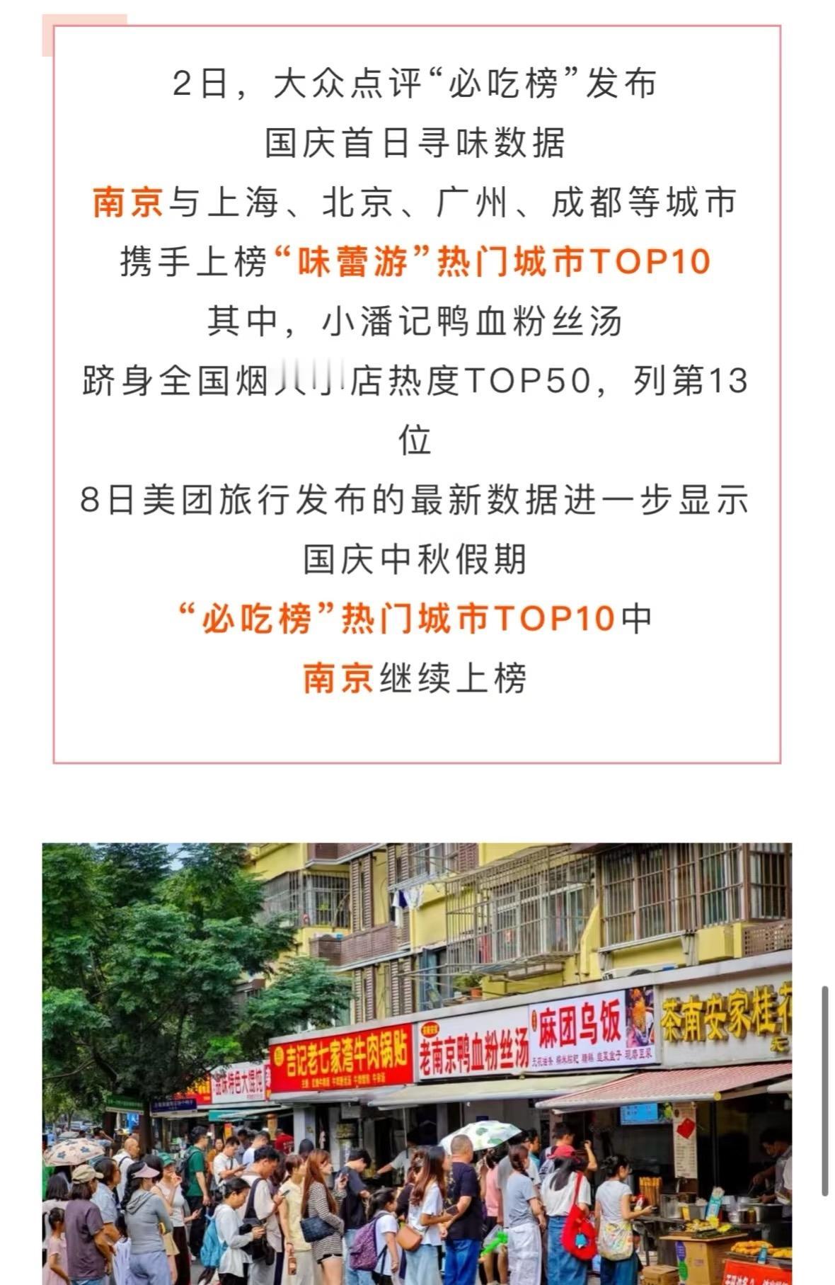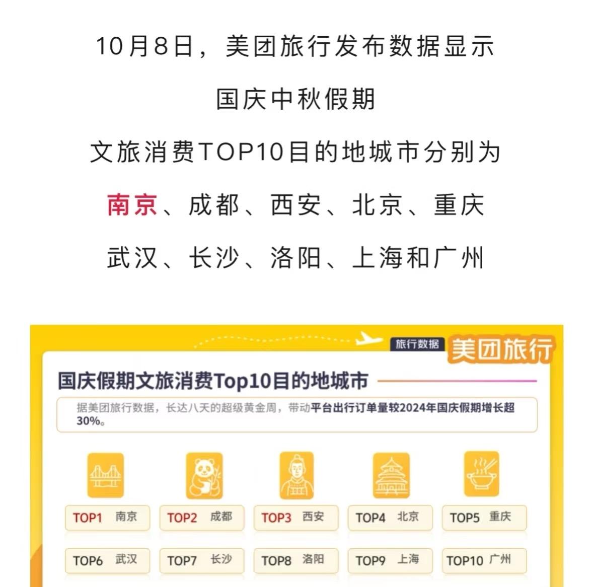 假期数据出炉!南京全国第一! 实至名归的第一…去玩了几天,感觉南京的规划很好,每个景点都很有序,还有志愿者在,很热情…体验感好好。很多景点都免费或者价格很低,来玩个几天性价比还是挺高的