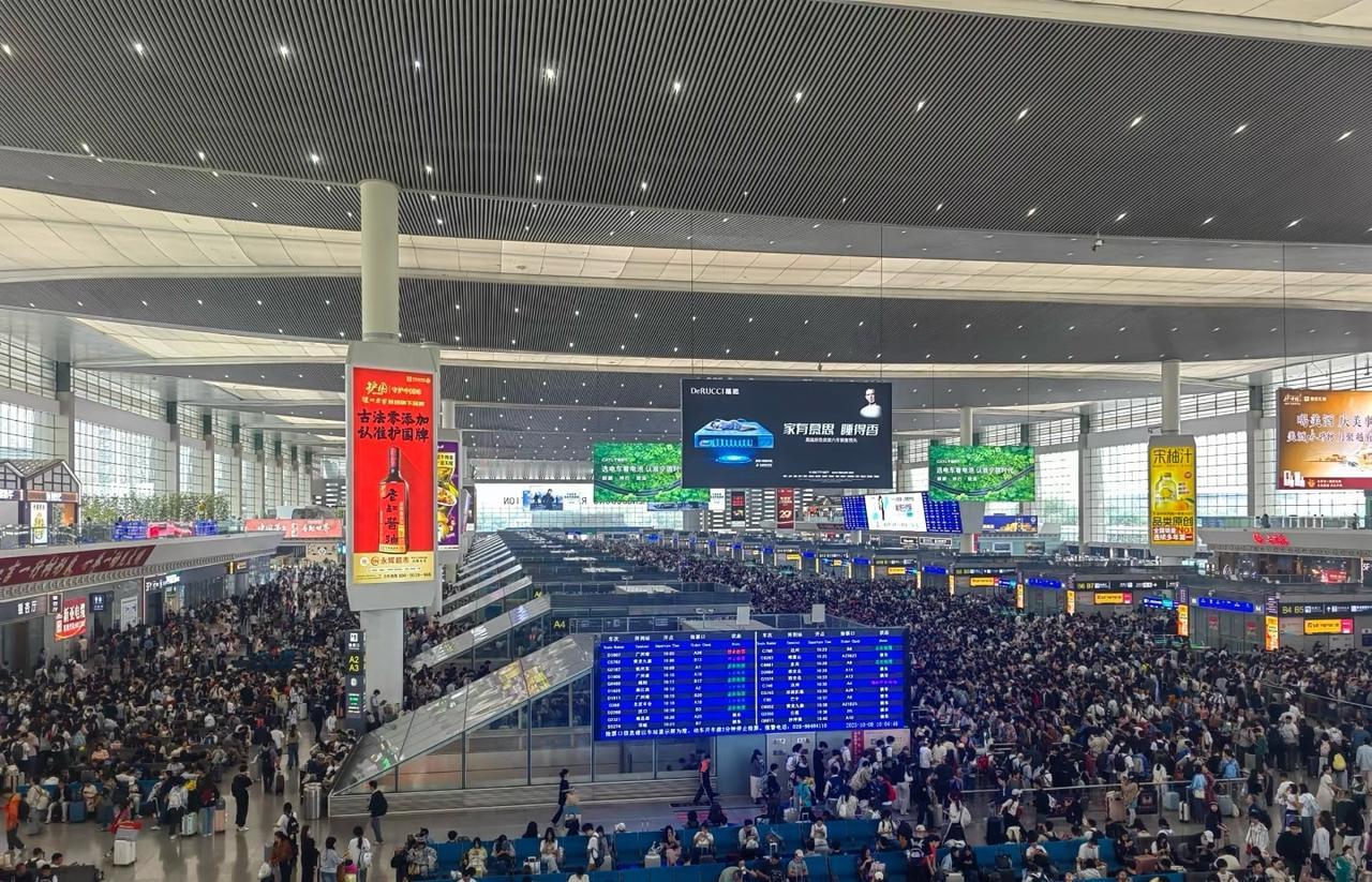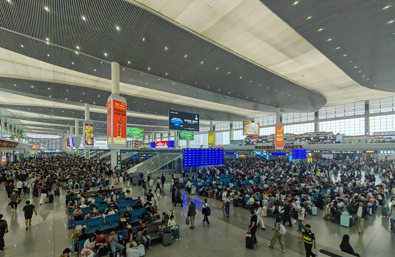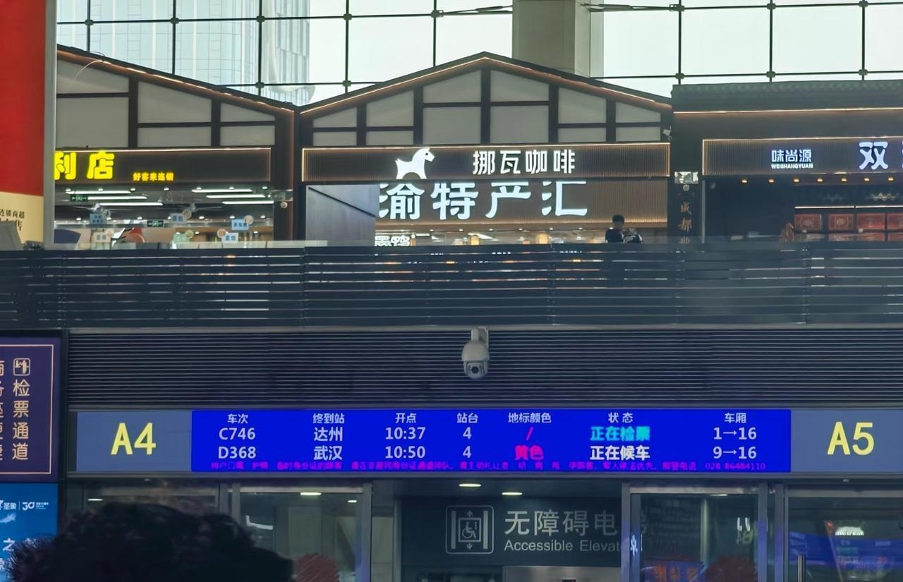 成都东今天客流量是不是已经接近临界流量。 两列车开车时间距离15分钟 前车到开车时间没有检完票,又延长了开车时间 检票后下站台,您猜怎么着,车没来, 好不容易车来了,很多人下车 最终比预计时间迟9分钟开车,终于上车啦。 这种特殊情况的出现,是否是车站接近最高承受客流量的体现呢。