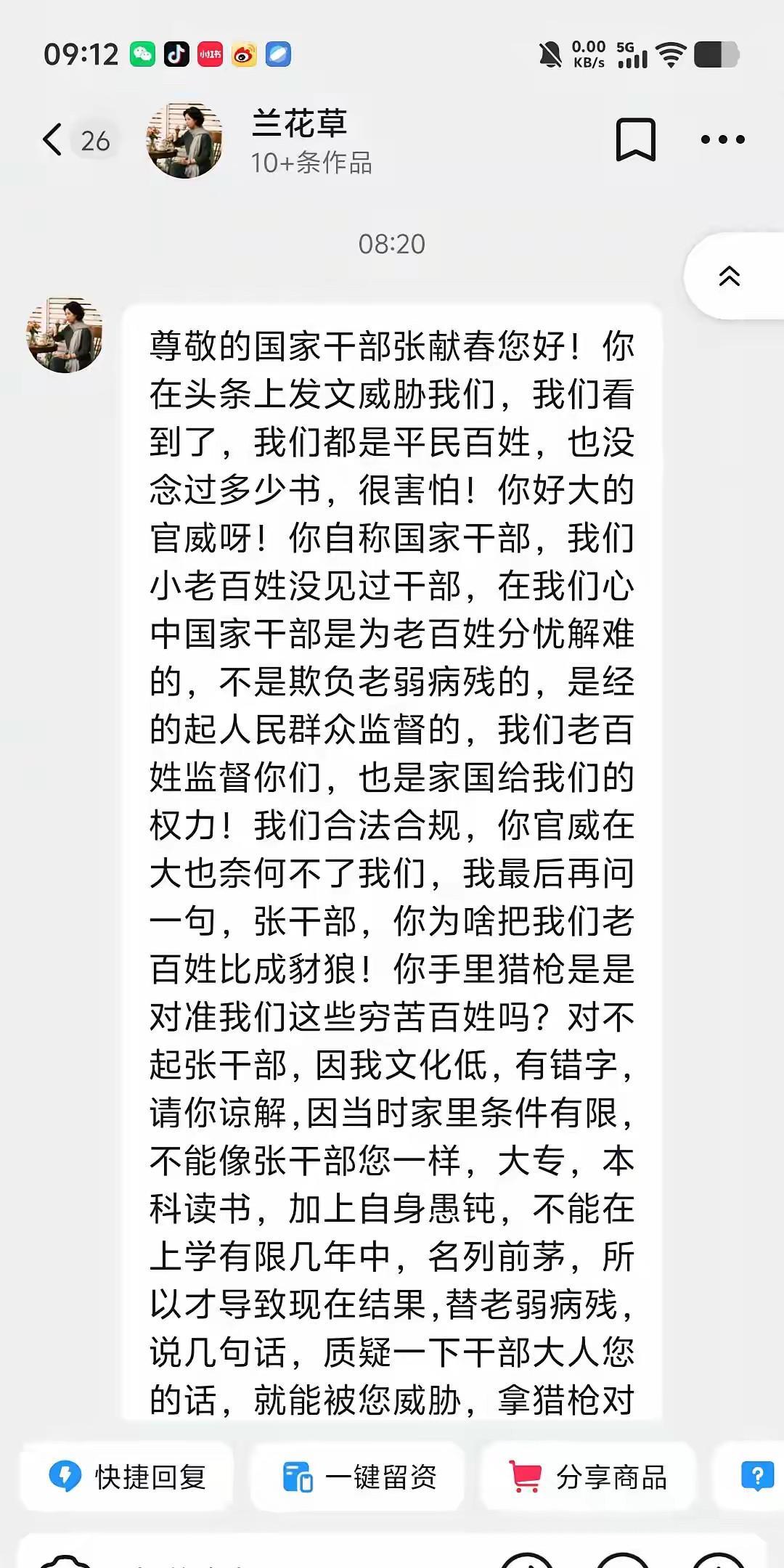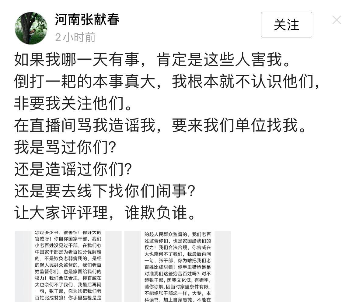 张干部切实感受了一把被黏住的感觉[捂脸] 这位兰花草一直发私信让张干部回关她,结果回关不成,发长文声讨张干部,问张干部所作所为的原因,作为平民百姓希望张干部可以不要拿“猎枪”对准她[笑哭],张干部不得不发文作出解释,如果她出问题就是这些人干的,不过张干部裹挟当事人的时候好像也是这样呢,被缠住的感觉不太好吧!#二八事件追踪#