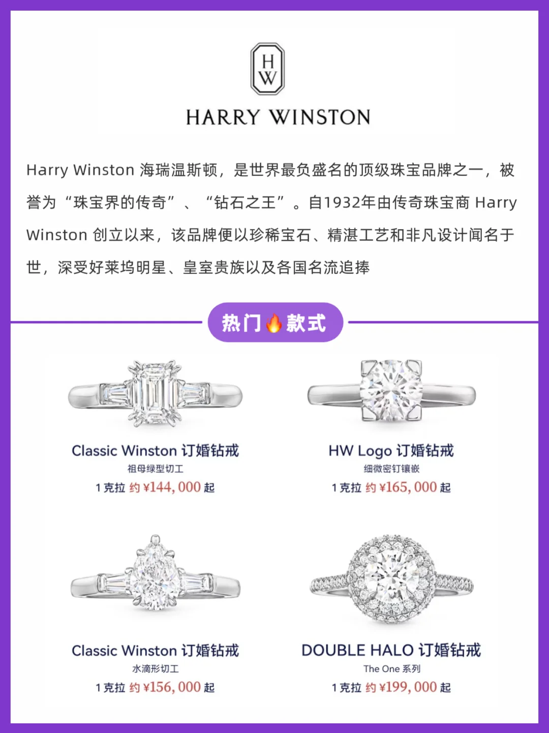 这些品牌知名度超高,每一家都有自家的招牌设计!比如梵克雅宝Estelle、蒂芙尼经典六爪…深受名流和贵族喜爱,属于闭眼入不会出错系列~
