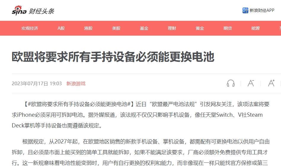 欧盟的规定将彻底改变我们的用机方式:从2027年开始,欧盟地区销售的新款手机,都需配有可更换电池以供用户自由拆卸。这看似一小步,实则是把选择权交还用户、向“计划性报废”宣战的一大步,彰显了消费者权益与环保理念的深度融合。 好多年以前,换手机电池多简单,掰开后盖,啪嗒一声,新电池装上,手机又满血复活,可现在呢?手机越做越薄,电池被焊得死死的,坏了就得花大价钱找专业维修,或者直接换新机。 厂商告诉你,这是为了防水、为了美观,可说白了,不就是想让你多花钱?欧盟这回站出来,硬气地说:不行!电池必须能让普通人用普通工具自己换。 这不是技术倒退,是在把选择权还给咱们用户!我觉得这招太狠了,直接戳中了厂商的软肋:你不能老拿“设计需要”当借口,逼着消费者当冤大头。 更深一层看,这规定其实是场绿色革命,手机用个两三年,电池不行了,很多人直接扔了换新的,电子垃圾堆得跟小山似的。 欧盟这次不仅要求电池可换,还得让废旧电池好回收,材料得循环利用,这就是在逼厂商从头到尾都得为环保负责,别老想着赚快钱。 环保不是喊口号,得从设计源头抓起,你想想,要是咱能随便换块电池,手机多用几年,既省钱又少制造垃圾,这不就是双赢? 有人说,可换电池会不会让手机不防水了?或者机身变厚,颜值拉胯?可我看这都是托词,技术哪有解决不了的问题?关键是厂商愿不愿意花心思。 现在有些手机已经能做到又防水又耐用,欧盟还给了高质量电池豁免条款,摆明了鼓励创新,说白了,厂商要是还拿技术当挡箭牌,那就是懒得动脑子。 欧盟这招就是在倒逼他们:要么把电池寿命做长点,要么就老实让电池可换,别老想着垄断维修市场。 咱买手机花了真金白银,凭啥电池坏了就得听厂商摆布?维修权这概念,欧盟早就开始推了,从家电到手机,步步都在让咱们从被动用户变成设备的主人。 你能自己换电池,省下的不只是钱,还有那种掌控感,我自己就特别烦那种电池坏了还得求着维修店的感觉。 欧盟这规定,简直是给咱们撑腰,让咱能理直气壮地说:这手机是我买的,我想咋用就咋用! 但这新规要真落地,挑战不小,废旧电池如果处理不好,可能反倒污染环境,但欧盟显然不是拍脑袋决定,他们要求厂商建回收体系,电池材料得高效再利用。 这就是在提醒所有人:环保不是消费者一个人的事,厂商也得负全责,我觉得这思路特别对,系统解决问题,才能真绿色。 消费者不是厂商的“韭菜”,地球也不是随便扔垃圾的垃圾场。 从2027年起,当你能随手换块电池,让老手机再战三年,你会发现,这不只是省钱的事儿,而是种全新的生活态度——更自主,更环保,更有底气。 你说,这么硬核的变革,是不是值得咱期待一把?