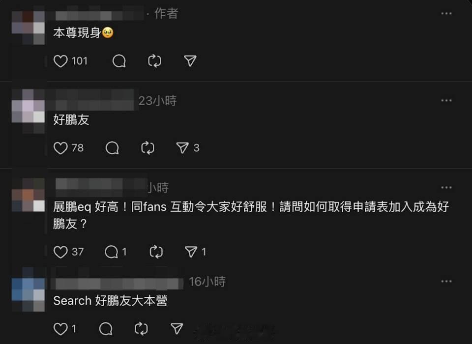 網民紛紛留言大讚:「展鵬eq 好高!同fans 互動令大家好舒服!」、「陳展鵬好嘢嚟架」,甚至問如何取得申請表加入影迷會成為好鵬友?另外,帖文也勾起不少人煲劇回憶,大讚《城寨英雄》好看,是一套出色的劇集。
