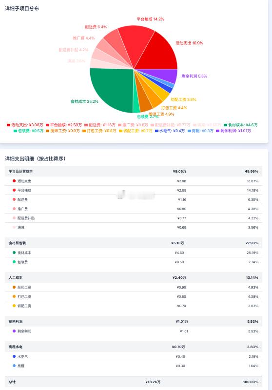 • 平台及运营成本:¥9.05万(49.6%)- 最大支出