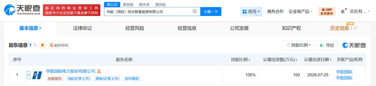 华能国际在洛阳成立综合智慧能源公司注册资本100万 天眼查工商信息显示,近日,华