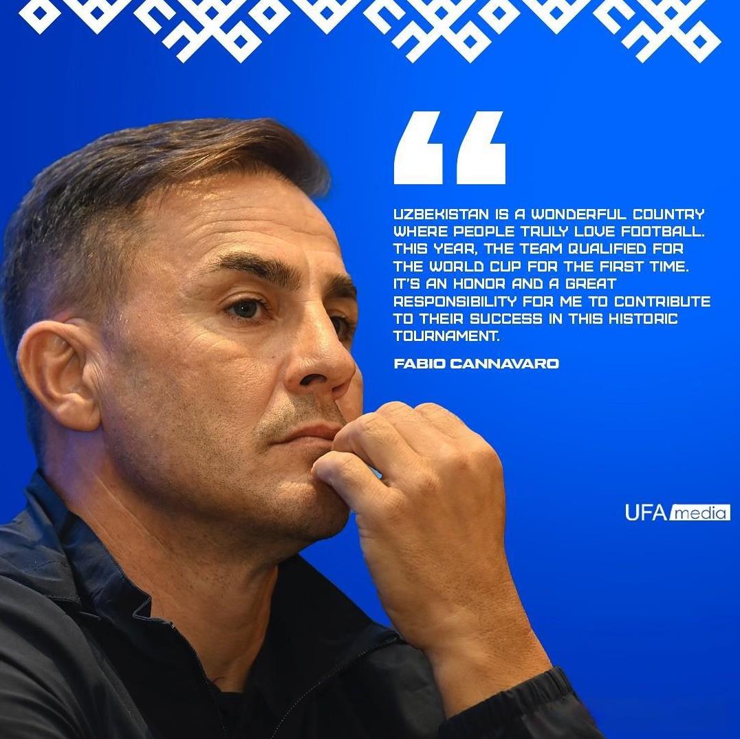 意大利名宿卡纳瓦罗正式亮相乌兹别克斯坦,在和球员与媒体的见面会里他依然展现了他在中国时的高情商,对乌兹别克斯坦上下都表示了高度的赞扬他也认为在这将是他职业生涯的高光时刻,他认为在世界杯上他能带领肖穆罗多夫们创造奇迹!