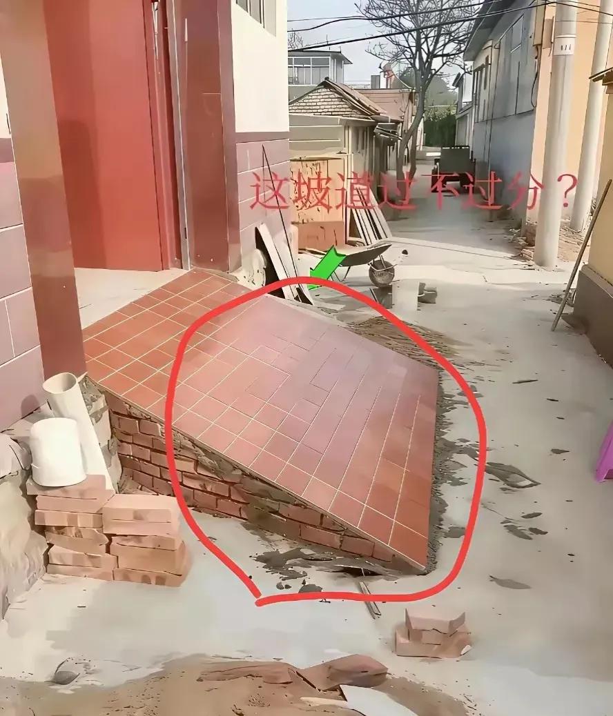 农村里这种门口偏不做台阶,非要弄个贴瓷砖的斜坡,别说上年纪的老人,就算骑电动车上